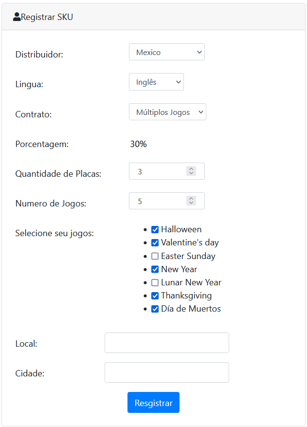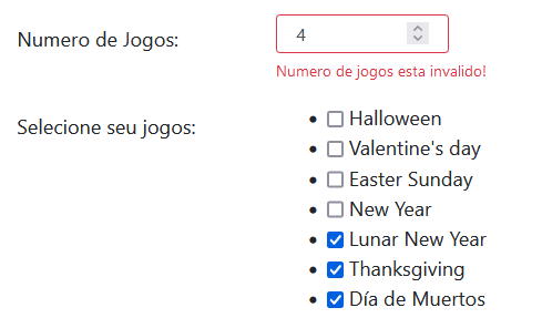 Nesta página tem um validador onde o número de jogos tem que ter a mesma quantidade de jogos, e caso o contrato seja de único jogo, só poderá escolher um jogo e os valores não estiverem certos também acionara o validador.