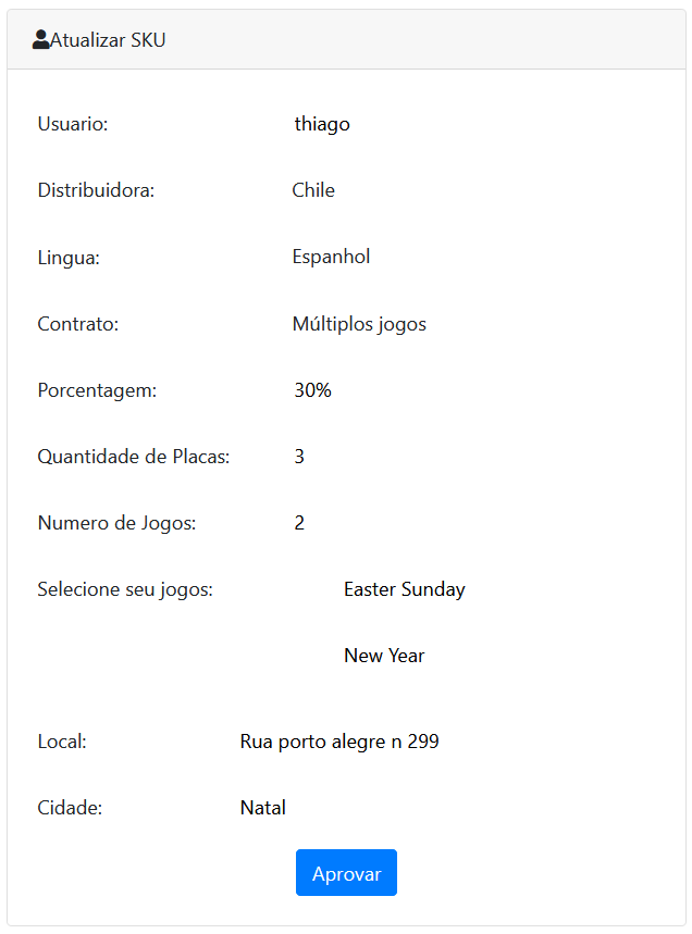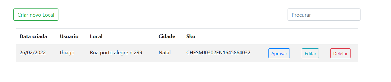 No começo do desenvolvimento, eu foquei mais na parte do usuário e suas funcionalidades, já que a maioria delas eu poderia reaproveitar os códigos na hora de criar a parte do SKU/local. Os usuários, gerentes e admin podem criar um SKU e editar eles, mas apenas os gerente e admin tem a permissão de aprova-los.