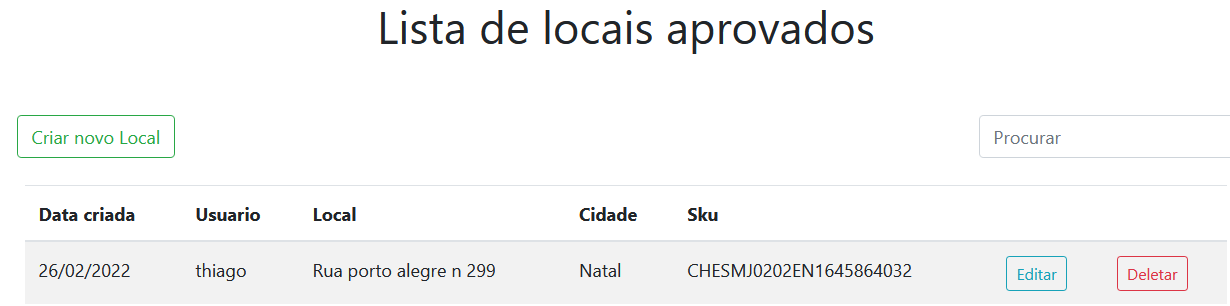 Caso ainda precisa editar o valor do local aprovado, apos editar os valores dele, ele voltara para a lista de espera para ser aprovado novamente. Para evitar em apertar no deletar acidentalmente, aparecera um modal para confirmar.