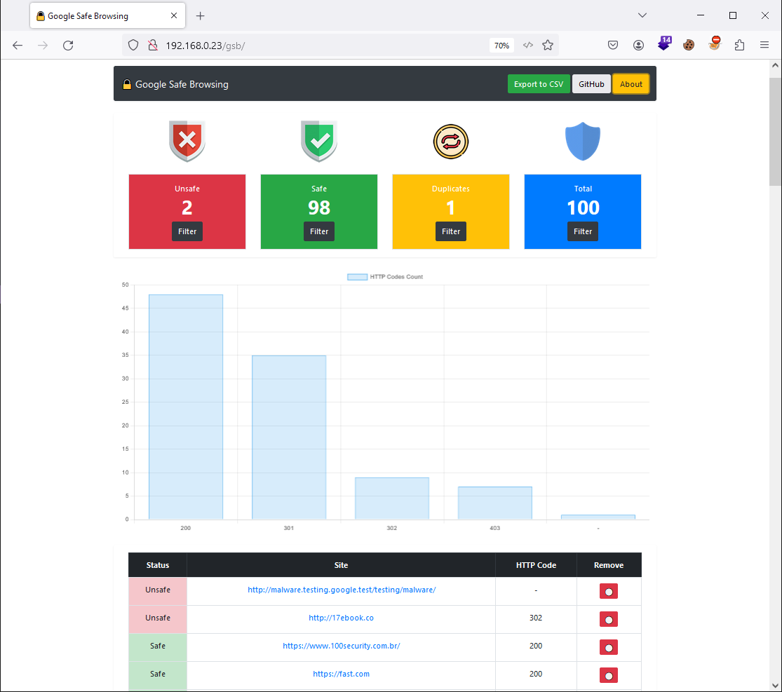 Através da API disponibilizada pelo Google desenvolvi um script em Python que permite pesquisar a reputação dos sites e exportar os dados para um banco de dados para que possa visualizar via web.