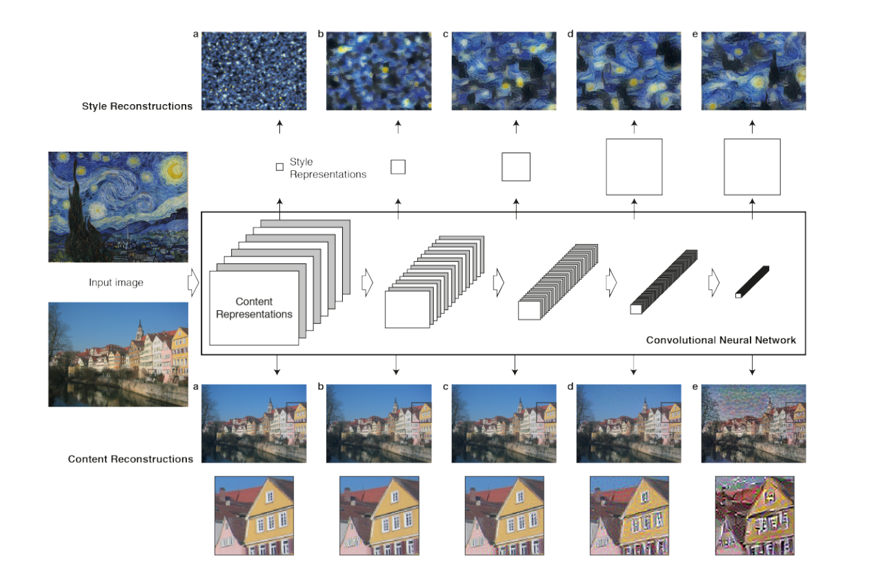 通常我們拍攝的照片只有內容,例如:人物、汽車、建築物...等。而藝術家的畫作添加了個人風格,例如:抽象派、印象派...等。其中人類是可以很容易地辨識一幅畫的內容以及風格,也就是說我們可以把一幅畫的內容和風格分割開來。