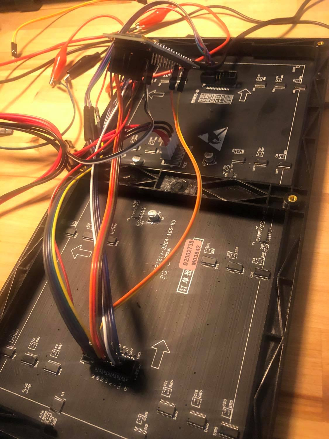 I have got a panel from Amazon that I hooked up to a ESP8266 (NodeMCU). I created some code to light up all the pixels red (trying any other colour fails which is another thing that's broken), but only the top right quadrant ever lights up. I re-did the wiring twice now and seeing the same result.