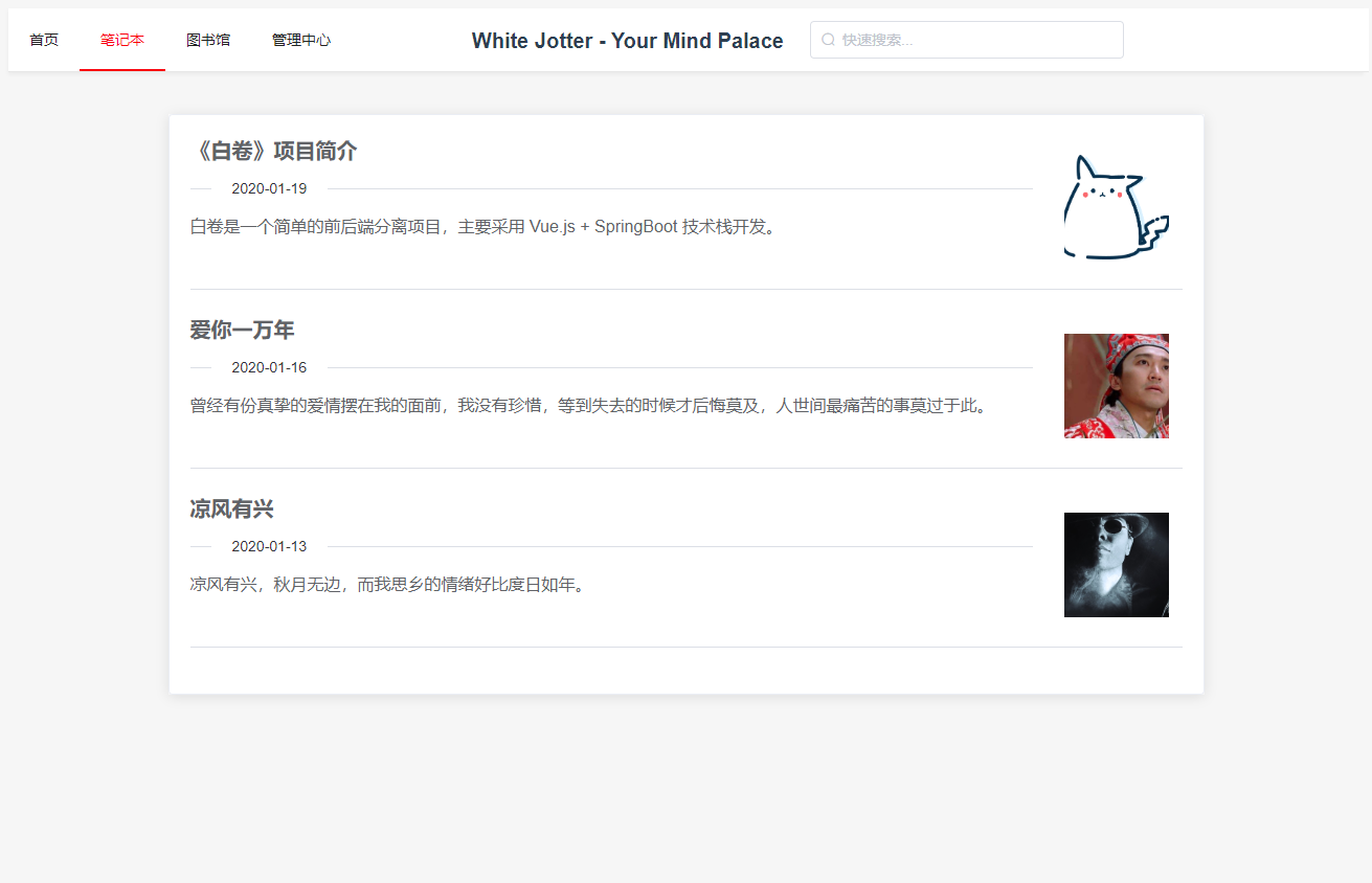 提供笔记、博文展示功能
