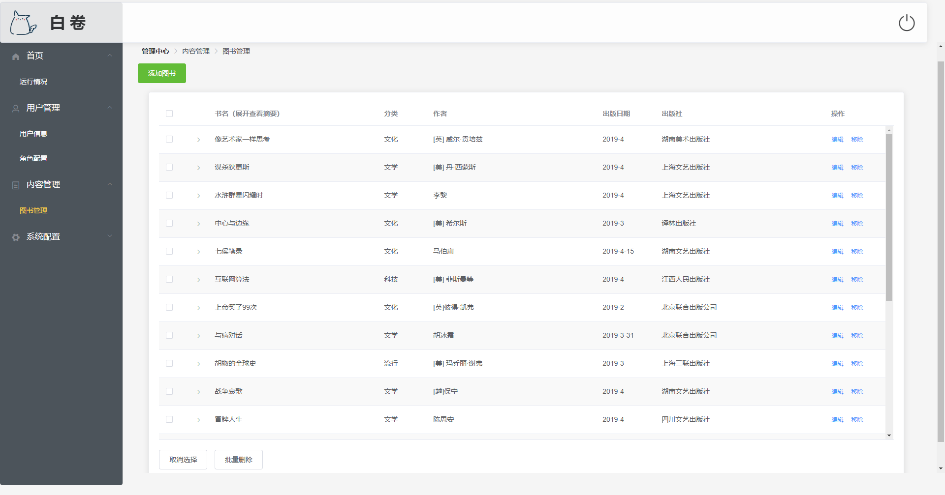 提供图书信息展示功能