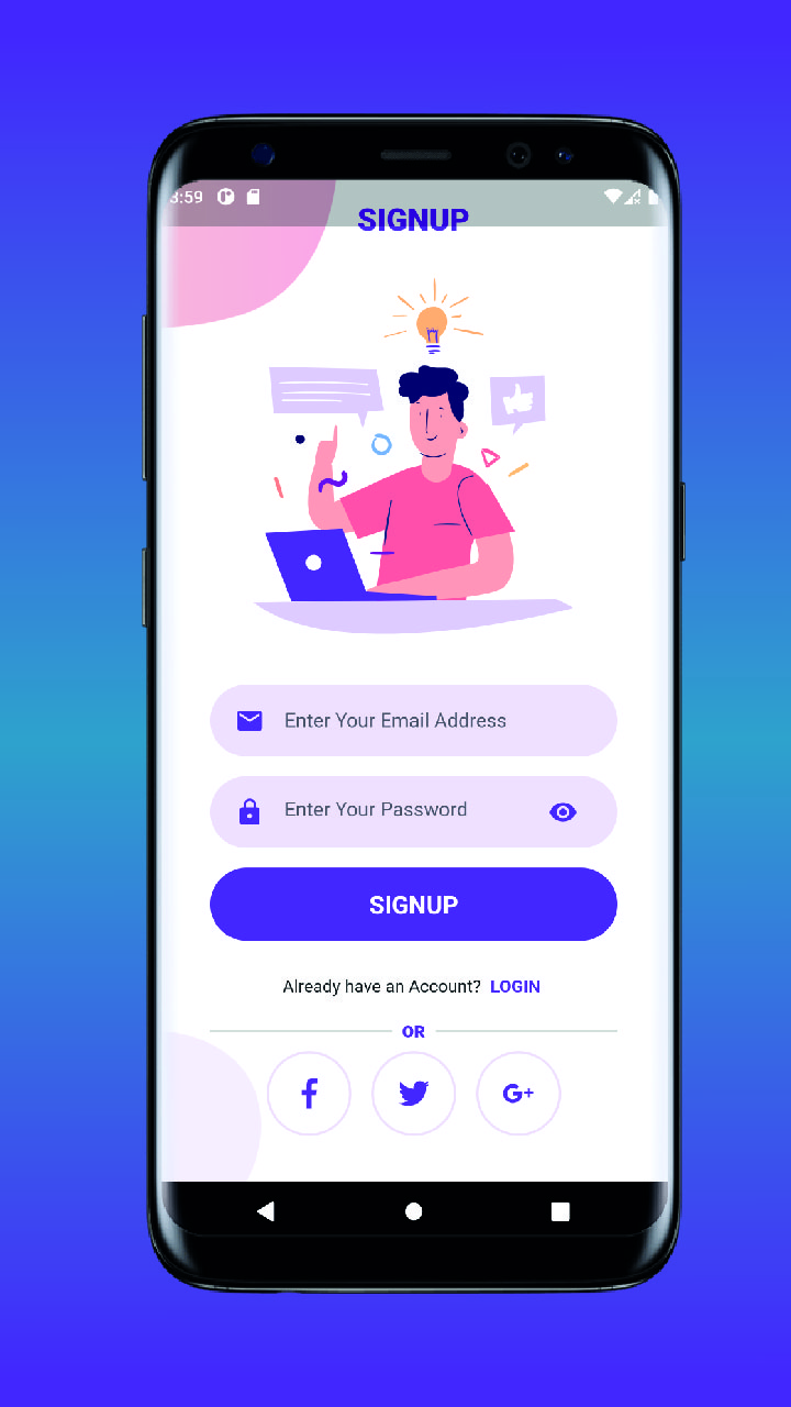 - Welcome Screen, Login Screen, Signup Screen, Forgot Password Screen, Email Verification Screen