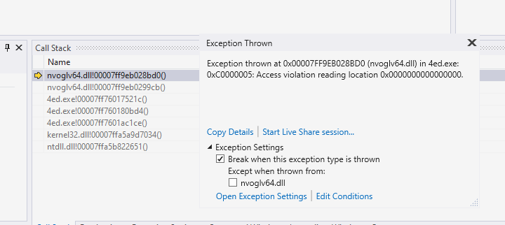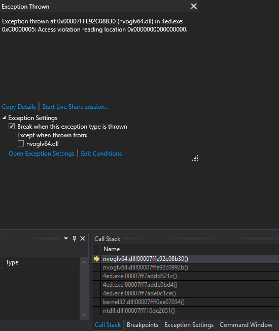 A fresh download of 4.1.7 will crash a few seconds after launch on my machine. 4ed launches in windowed mode and everything appears to initialise properly: I see the default buffers and I hear a startup sound. But it crashes pretty soon after that.