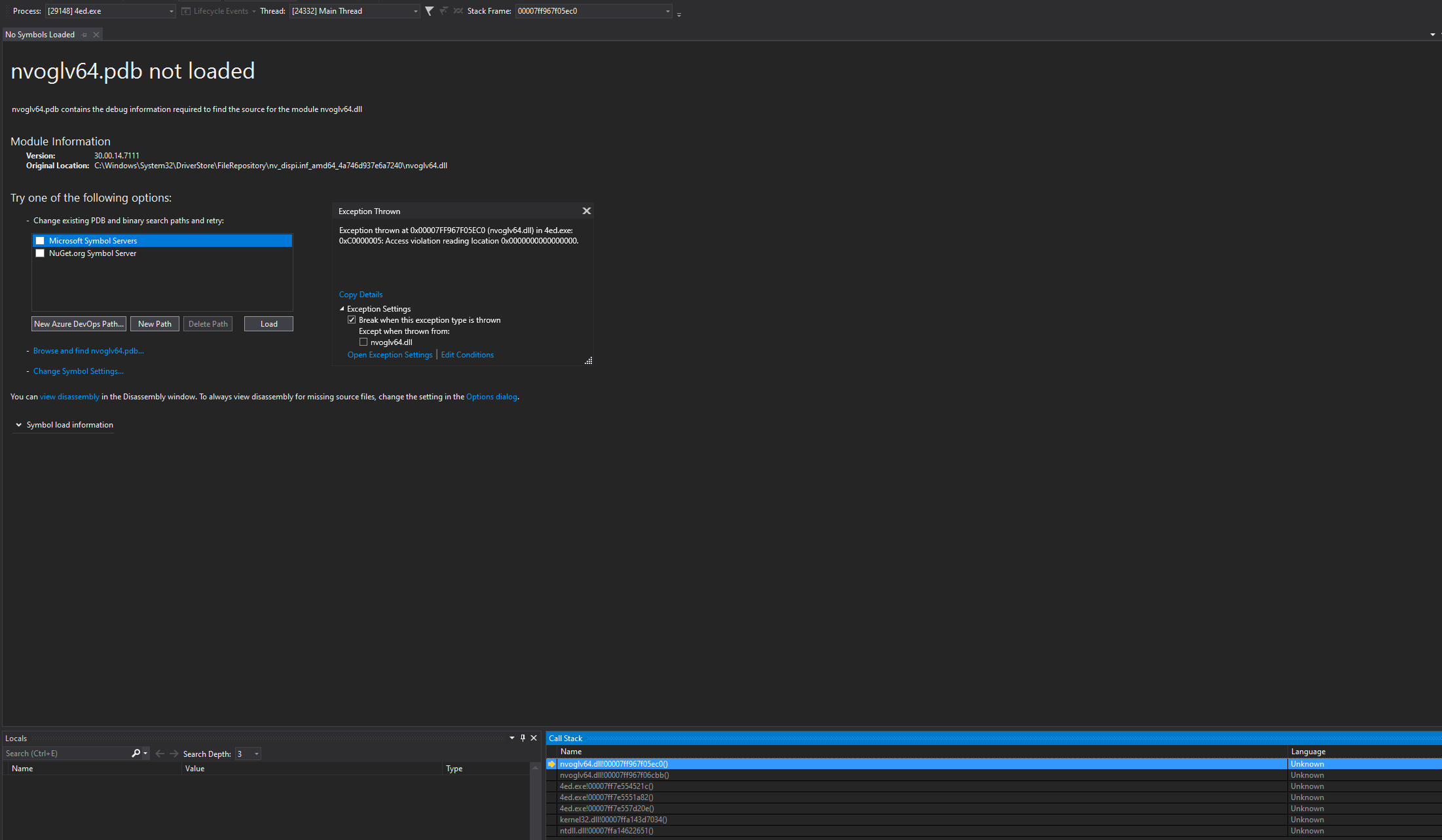 I am having the exact same issue with 4.1.18 (x64) and 4.1.17 (x86), utilizing the mesa drivers gives almost identical results for both, x86 plays a sound on startup while x64 is silent. Running this on an Radeon 6900XT and Win10, errors are from atio6axx.dll. I don't have access to older versions of 4coder so I cannot test those, unfortunately |