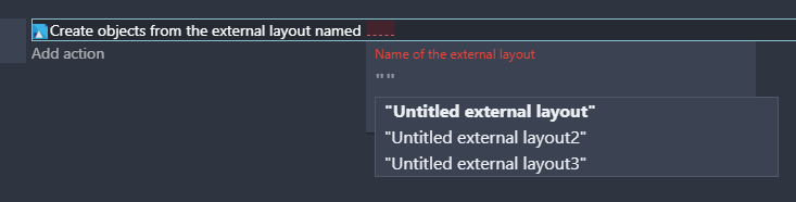 It shows every external layouts as the scene asked when creating an external layout is only used for the object list and external layouts can be shared with several scenes.