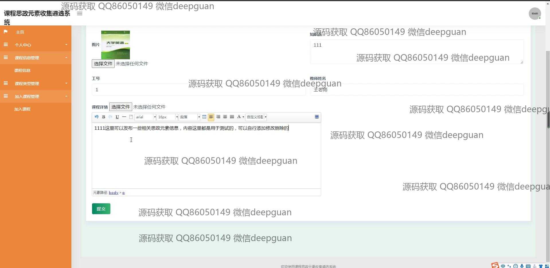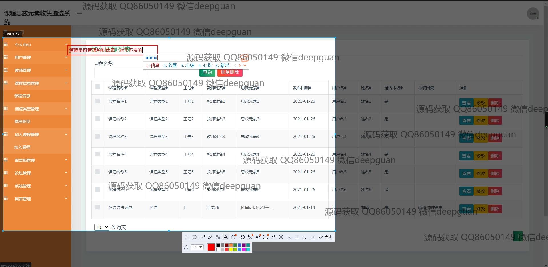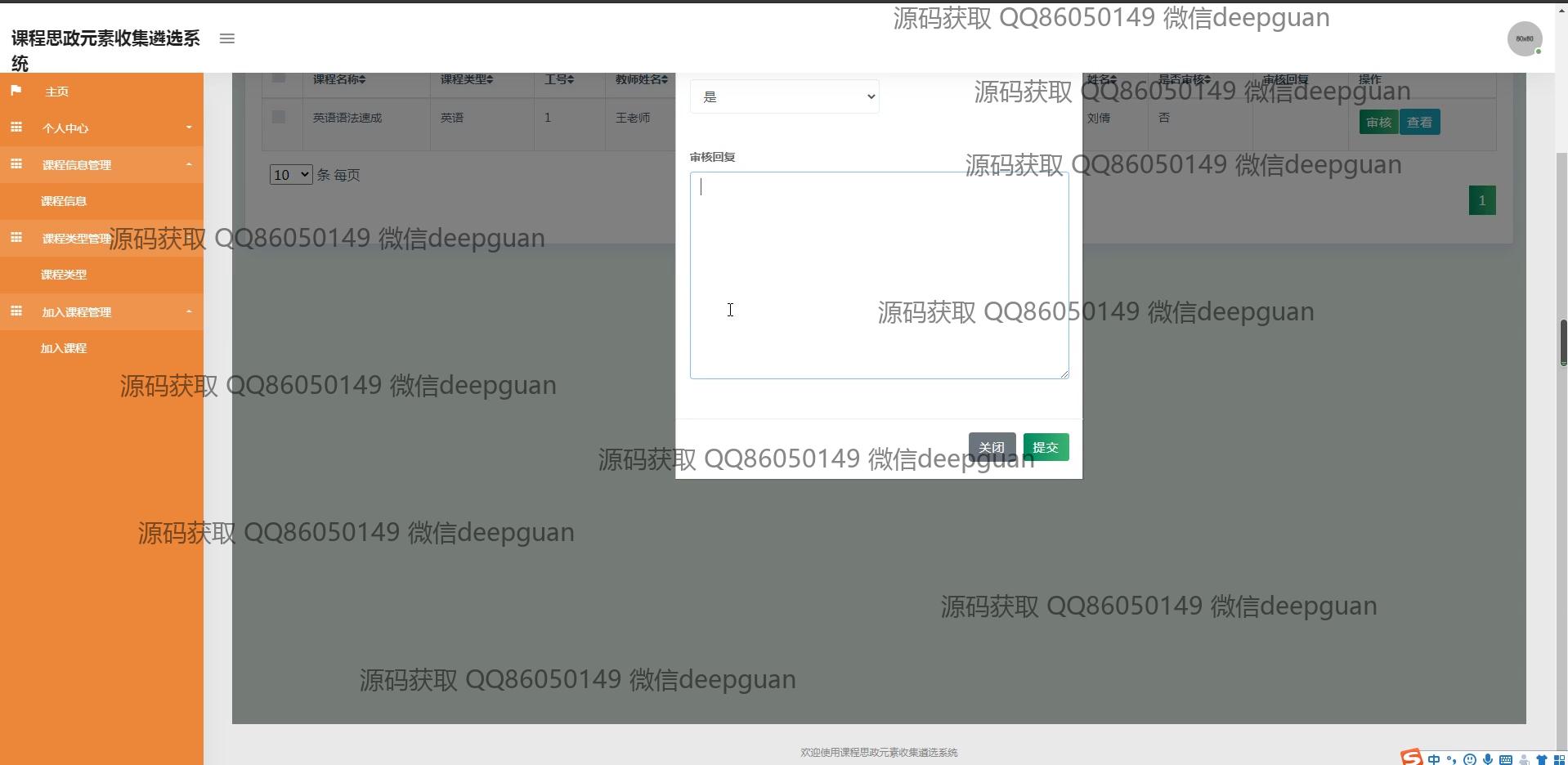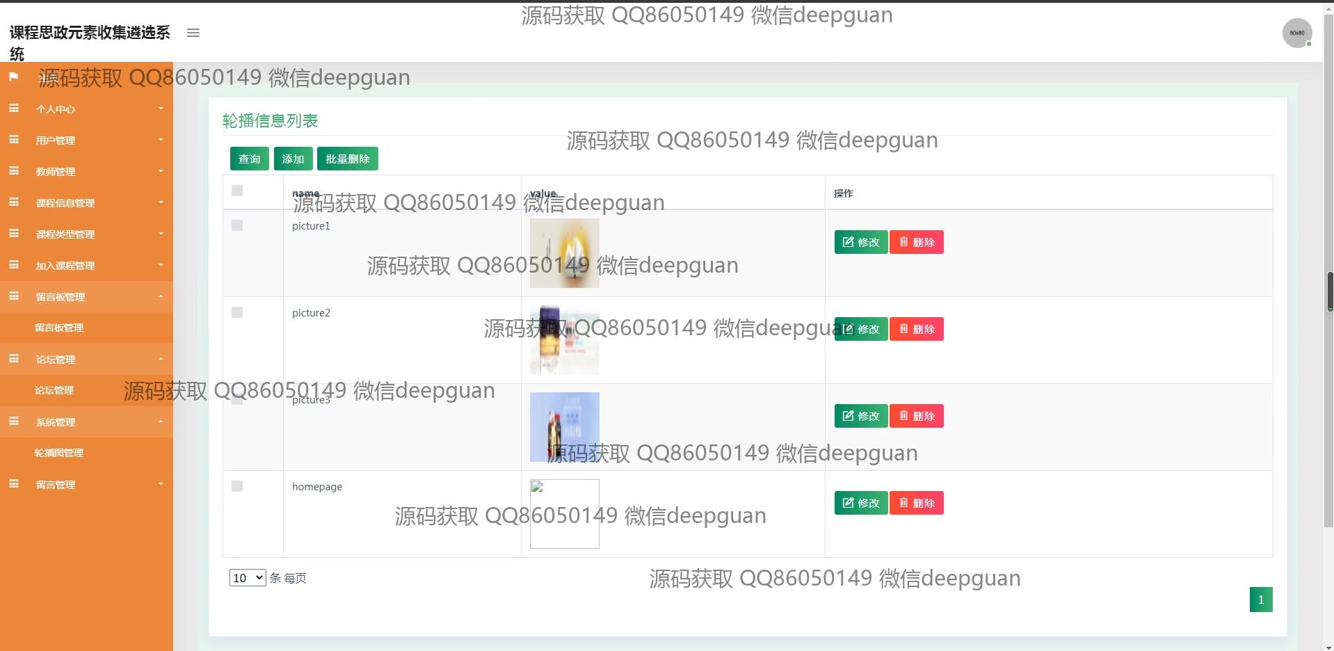课程思政元素收集系统:角色分为管理员、教师、用户;支持课程信息管理、课程类型管理、论坛互动、留言反馈、用户管理及思政元素筛选编辑功能。 --计算机毕业设计源码;毕设源码;java毕业设计源码