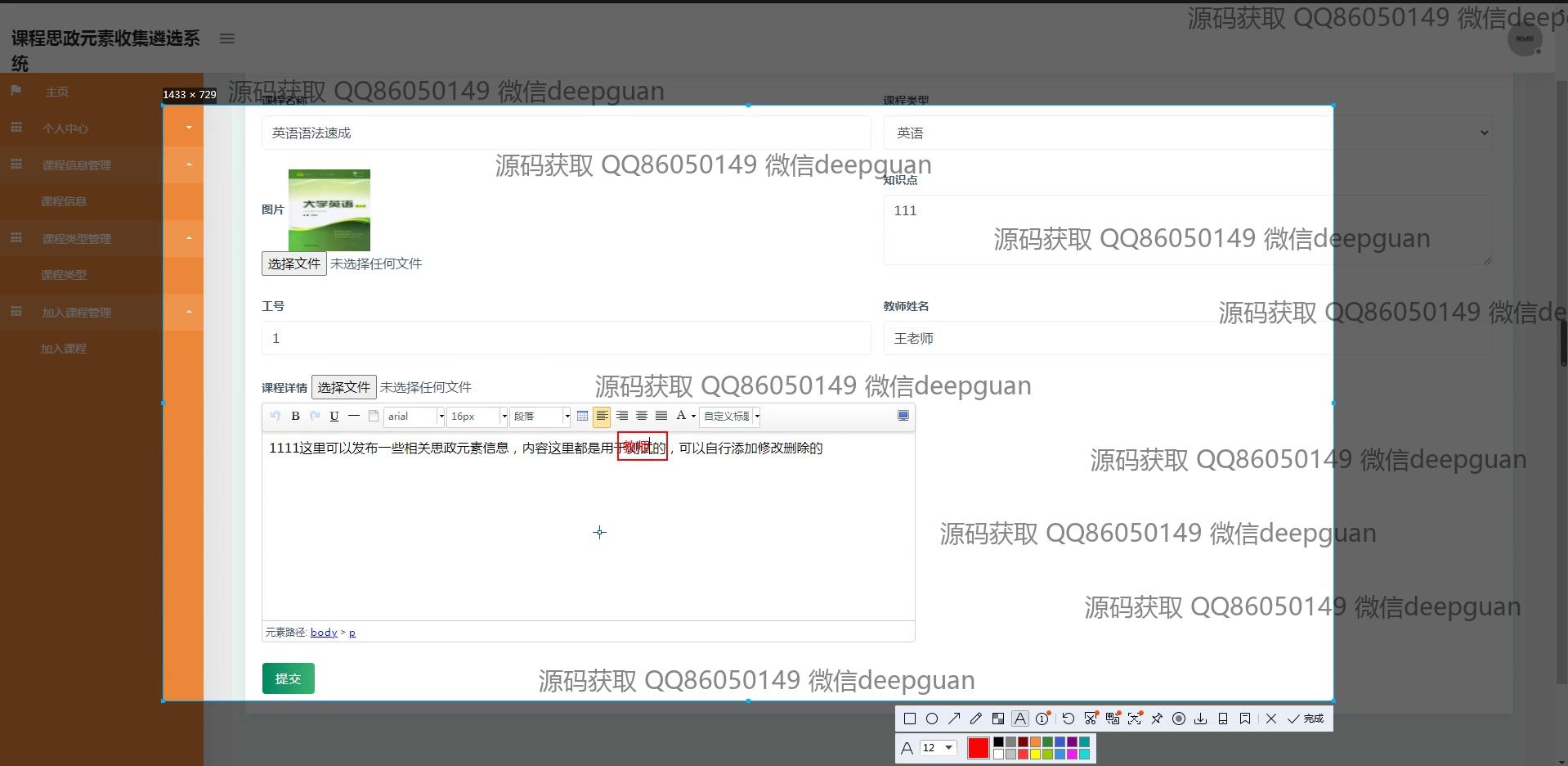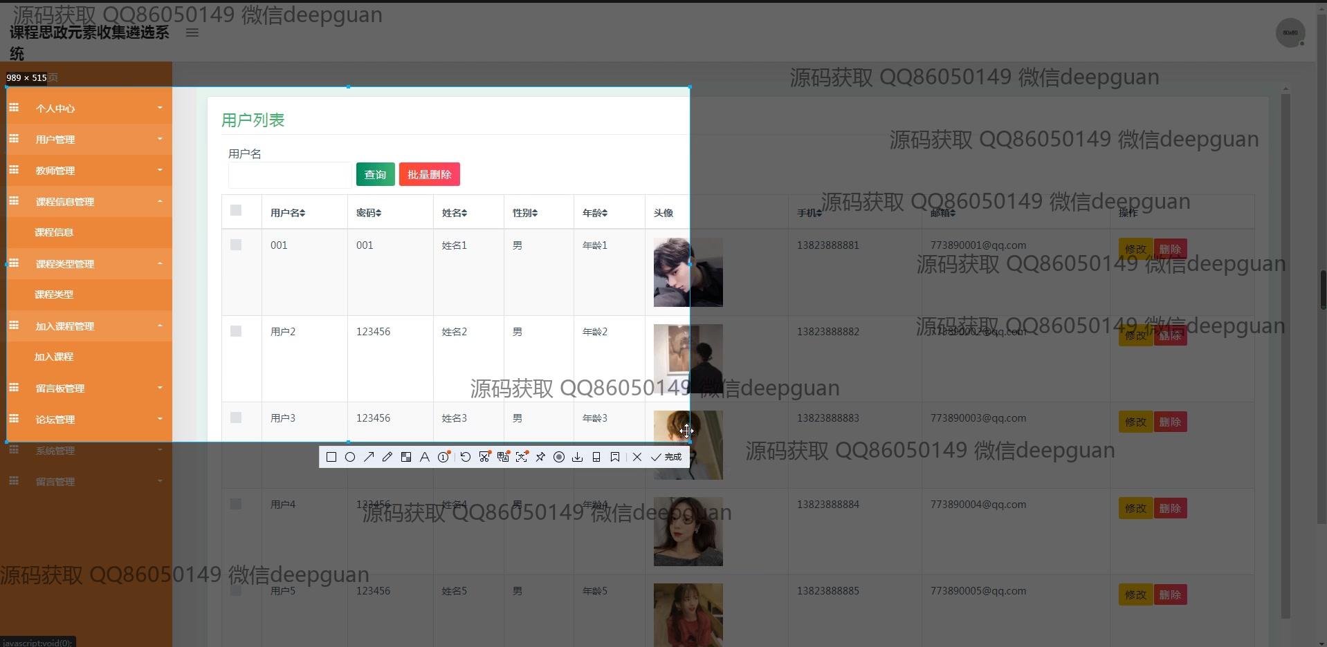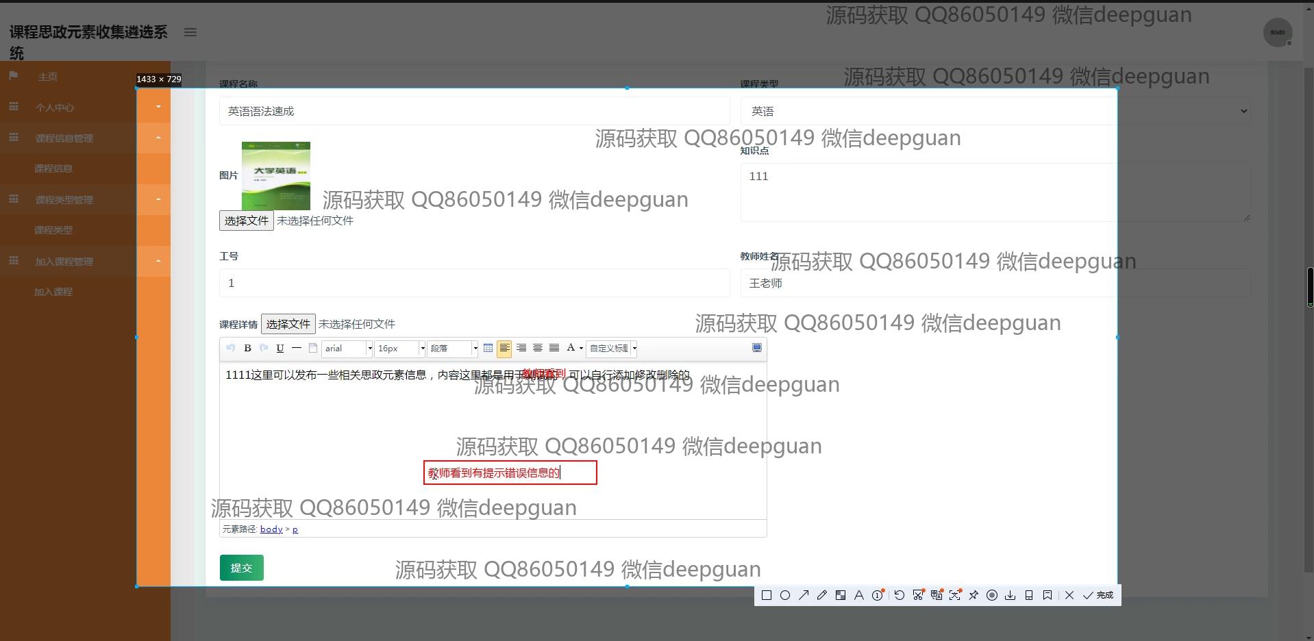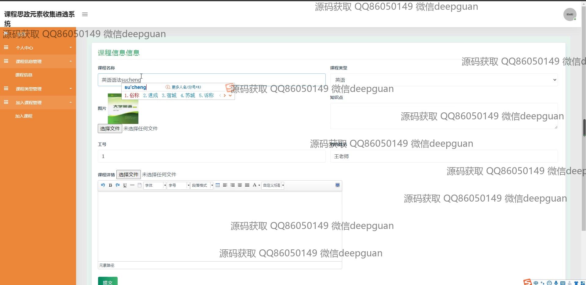 课程思政元素收集系统:角色分为管理员、教师、用户;支持课程信息管理、课程类型管理、论坛互动、留言反馈、用户管理及思政元素筛选编辑功能。 --计算机毕业设计源码;毕设源码;java毕业设计源码