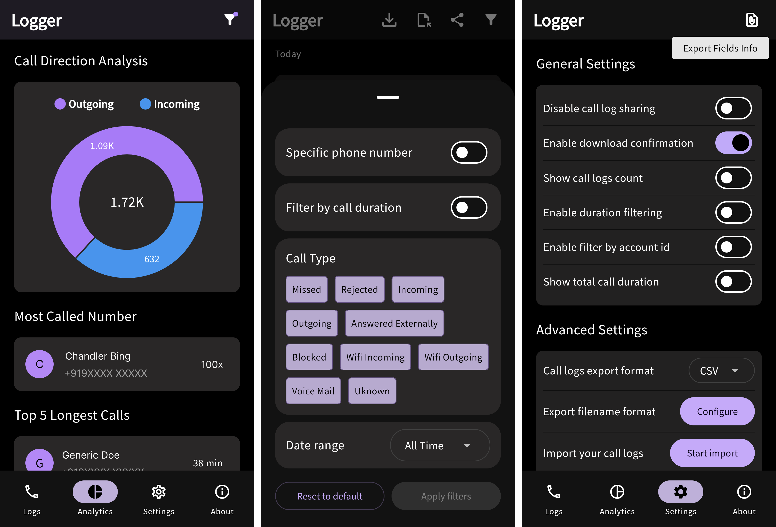 - Data Security: Logger prioritizes your privacy by not storing any call log data on our servers.