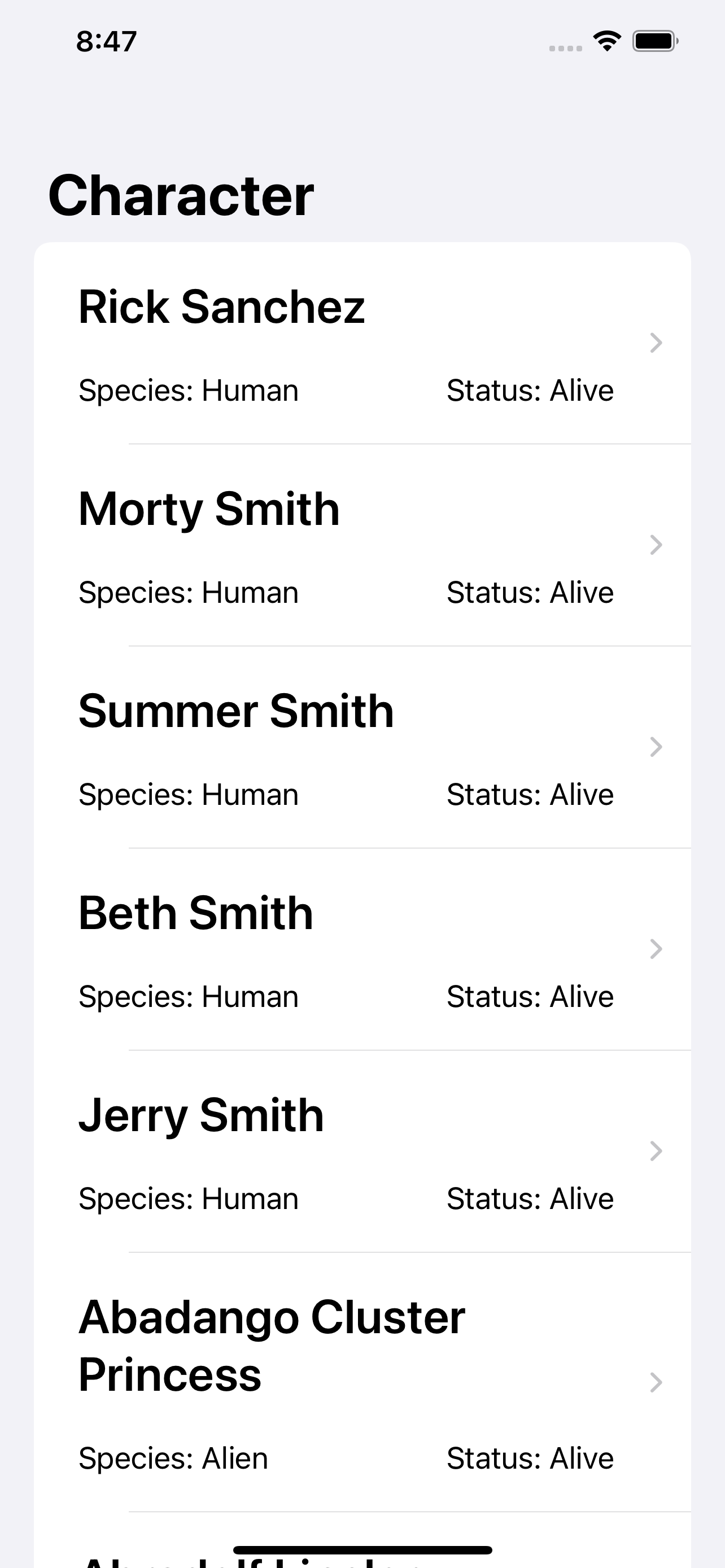 Getting character list from given backend and show it on the app. Show the detail about character when user click on character list available