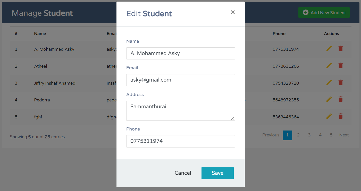 I have created a simple PHP ajax CRUD application using MySQL, Bootstrap & jQuery DataTables. If you want to have an account on this page, you can either create your own or use my account and fill out the table with details.