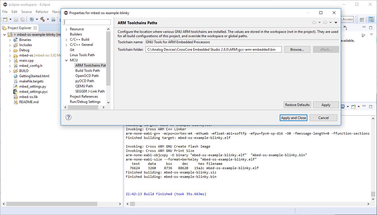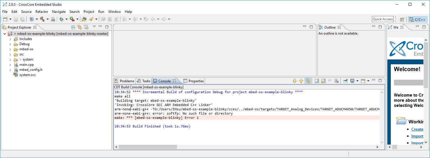 CrossCore Embedded Studio (CCES) 2.9.0+ will now pre-process the GCC LD scripts meaning that an ARM mbed project targeting COG boards and exported to CCES will now successfully build. |