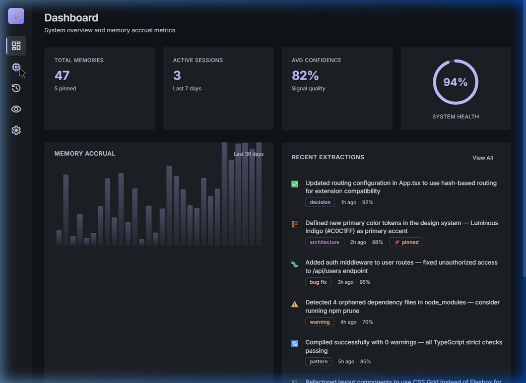 Engram is a VS Code extension that creates a persistent memory layer for Claude Code. It silently: