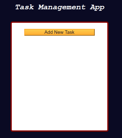 Description Project consist of a simple task management application that helps create, update, and delete tasks as well as set deadlines. Languages and Utilities Used JavaScript HTML CSS Node.js VSCode Environments Used Windows 10 (21H2) Visual Representation of Application
