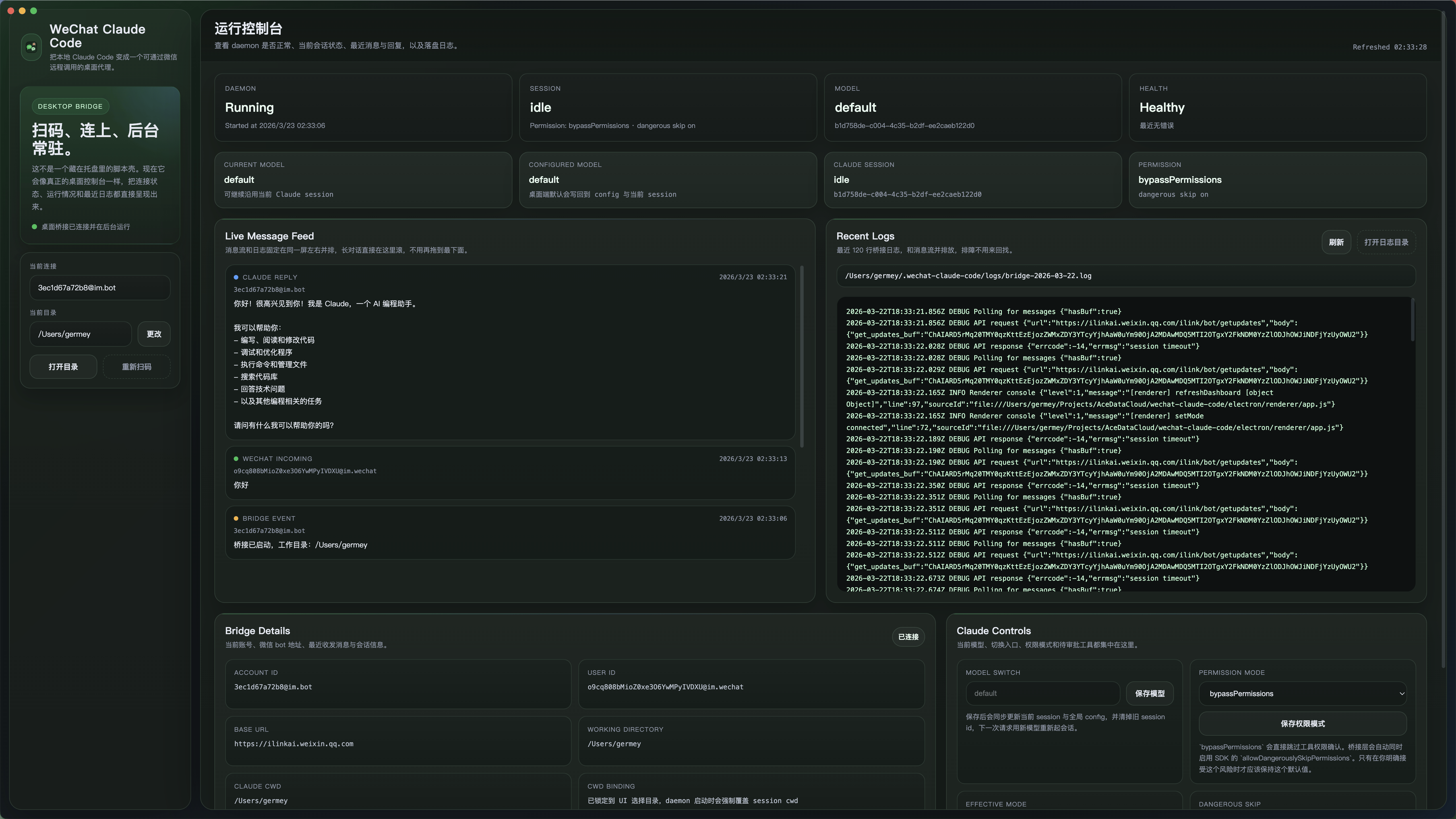 Chat with Claude Code directly from WeChat using the Electron desktop app.