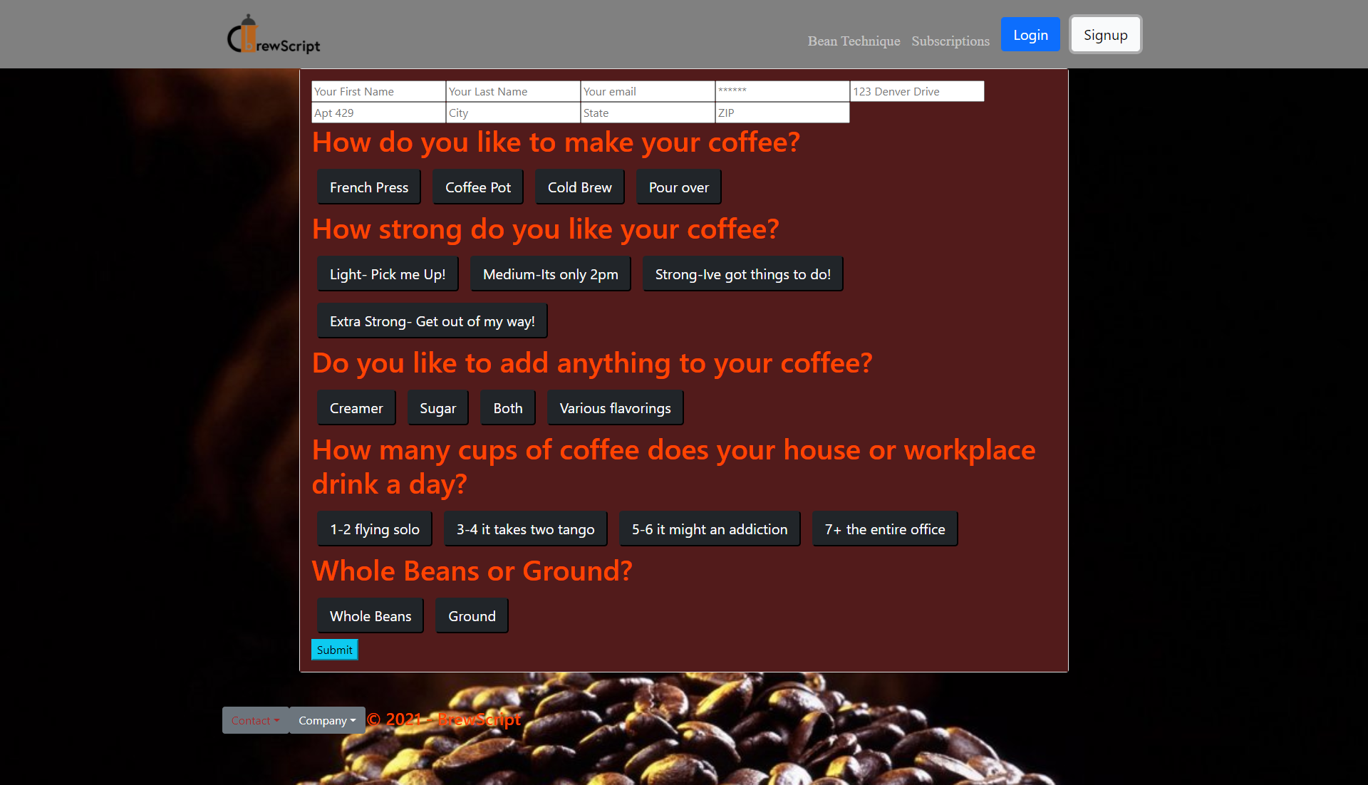 BrewScript is a modern and innovative coffee company. It was formed by four friends and their unshakable love for brewing the best cup of coffee possible. BrewScript can help you tap into your potential, feel your best every morning, and fuel your path to greatness!