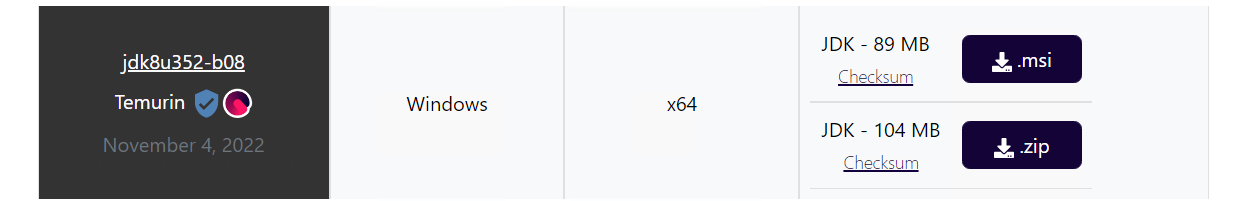 - Go to the Adoptium JDK website and download JDK 8 msi installer for Windows.