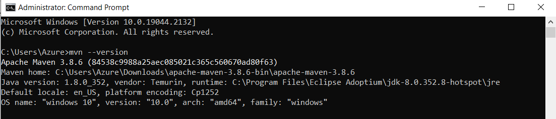 - Now open a new window of Command Prompt and run the command "mvn --version". If there are no errors in the output, and the version number is being shown in the output, then Maven installation is successful.
