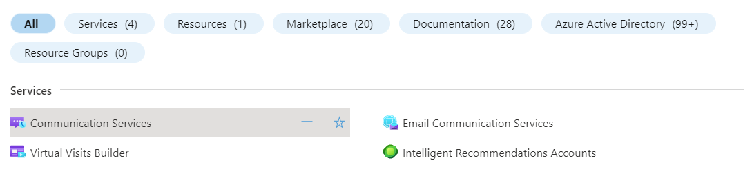 - Go to Azure Portal and search for "Communication Services" and select it.