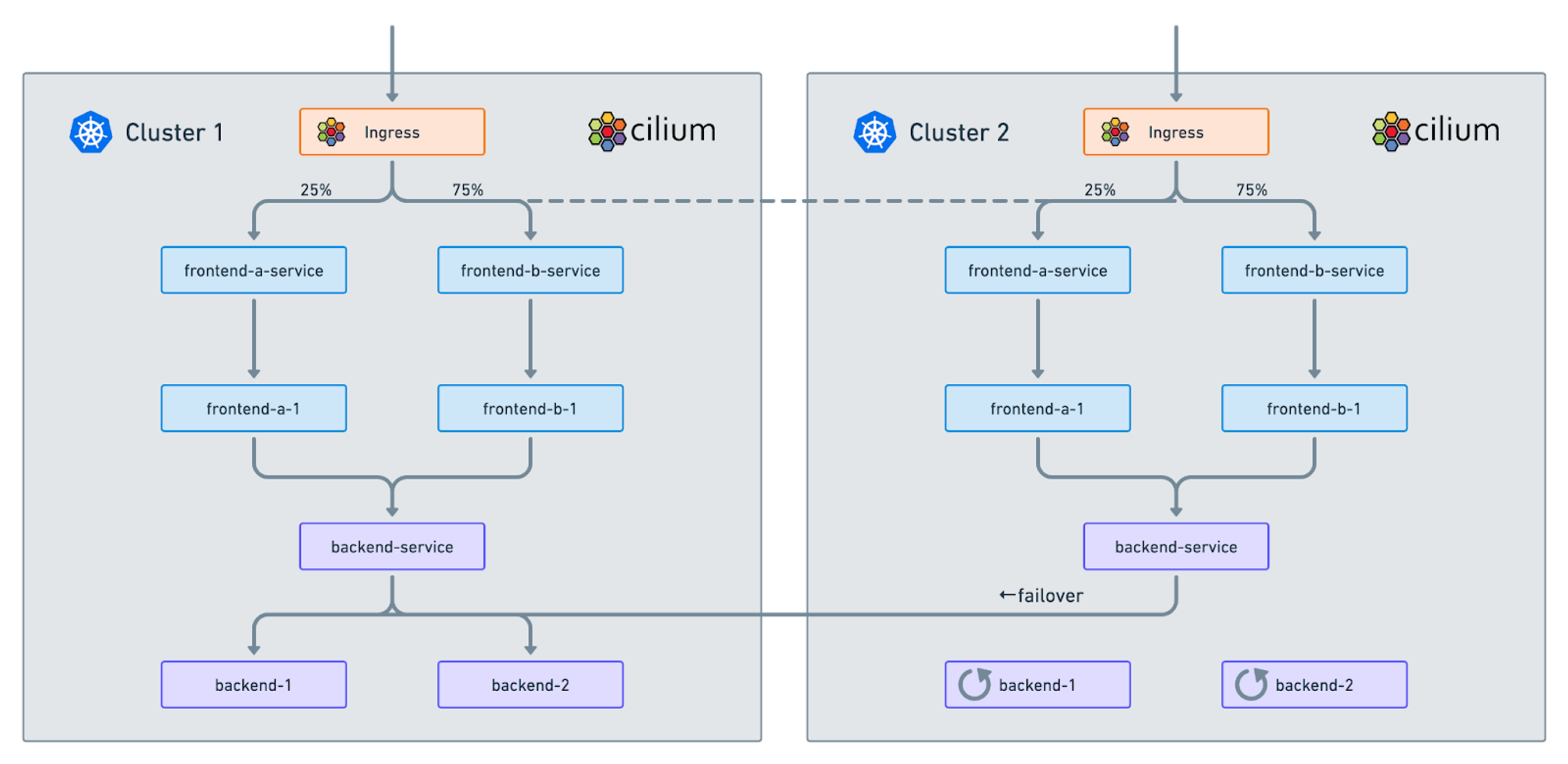 Cilium cluster mesh allows declarative policy to be deployed on Frontend