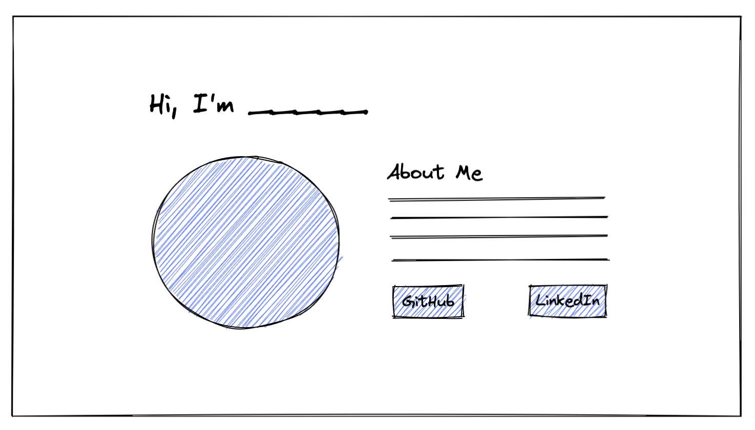 In this lesson, we'll be building a React component that represents the home page of a portfolio site for yourself based on this wireframe: