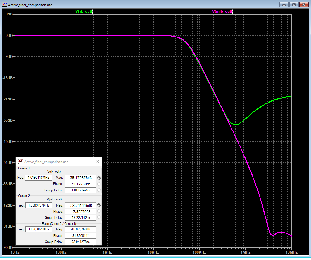 As you can see MFB filter performs much better in the stop band