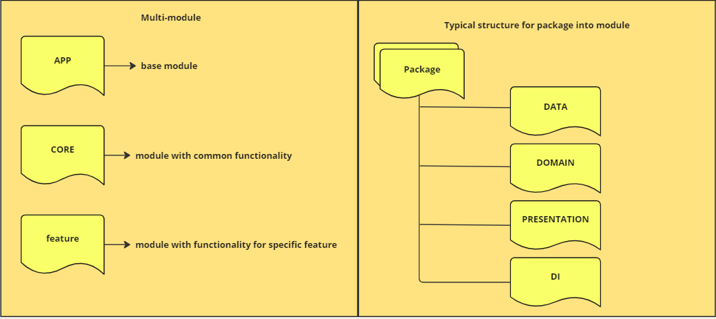 The application is divided according to the principle of multimodularity, within the modules, the division into packages according to the clean architecture.