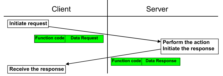 Escencialmente, el protocolo se reduce a un código de funcón y un paquete de datos en una trama.