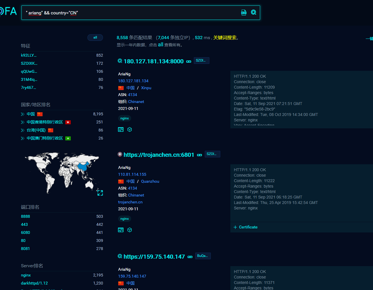 1.Search for assets using Fofa:" ariang" && country="CN"