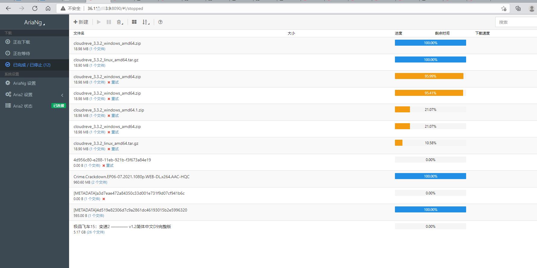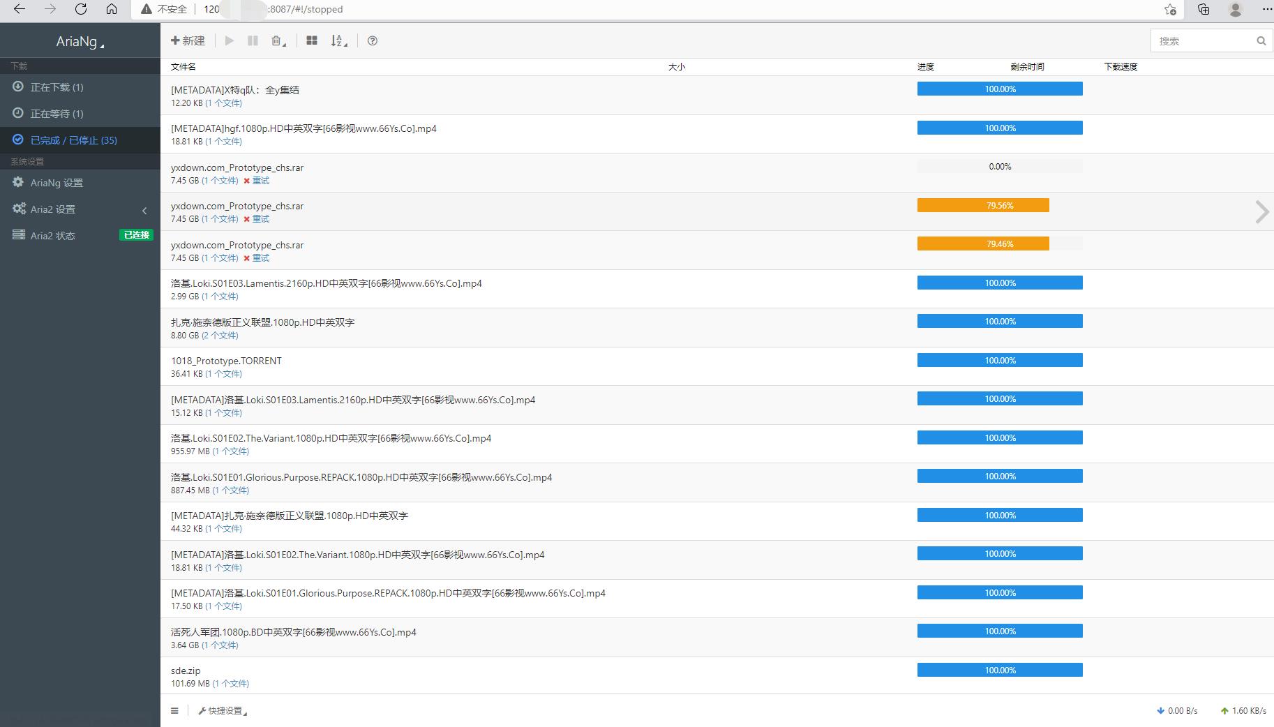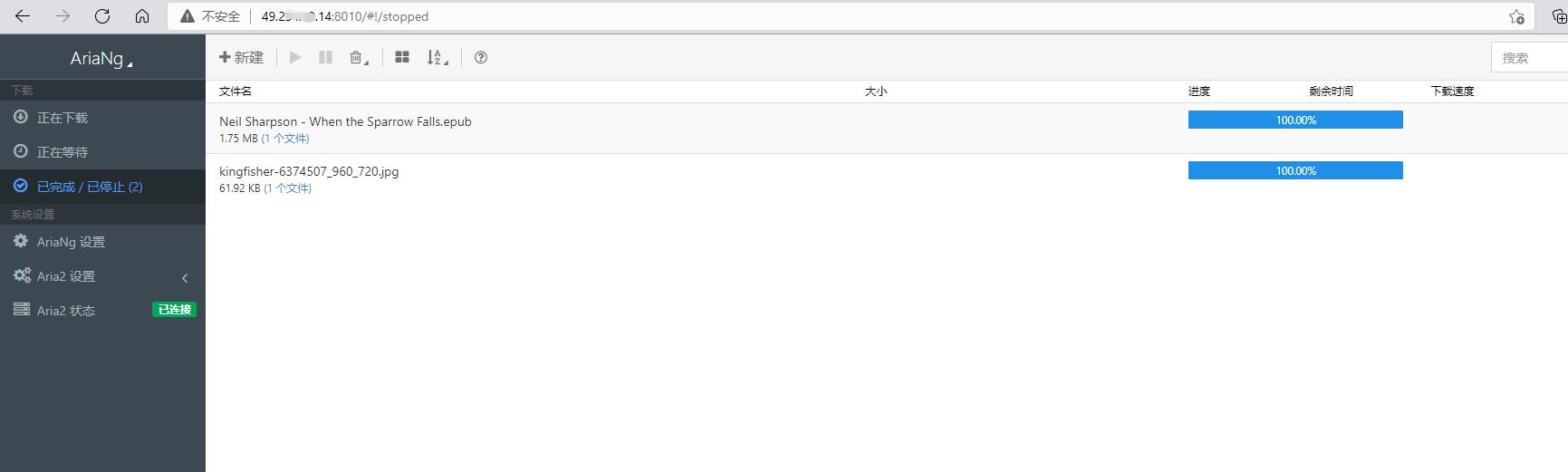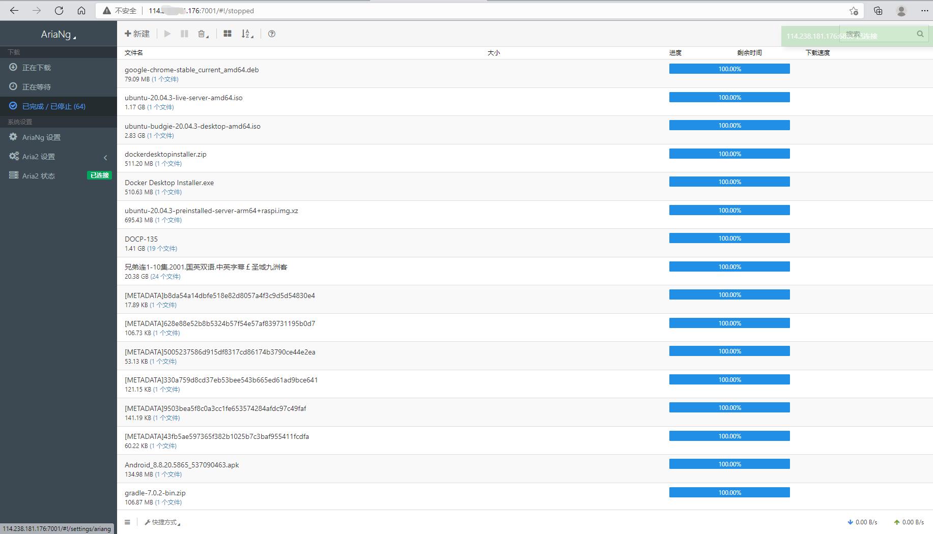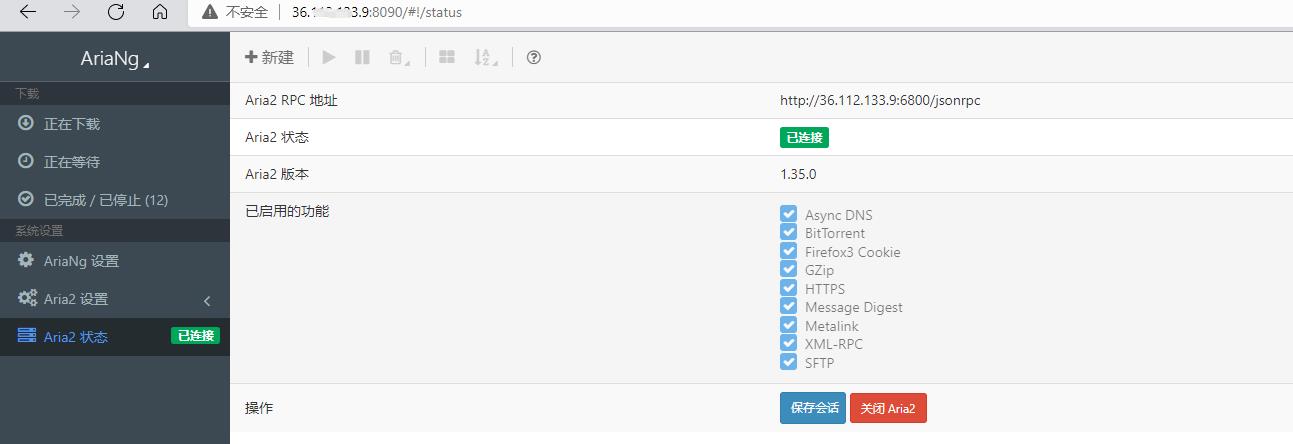 2.Visit. You can view the download history, view AriaNg status, settings and settings of AriaNg