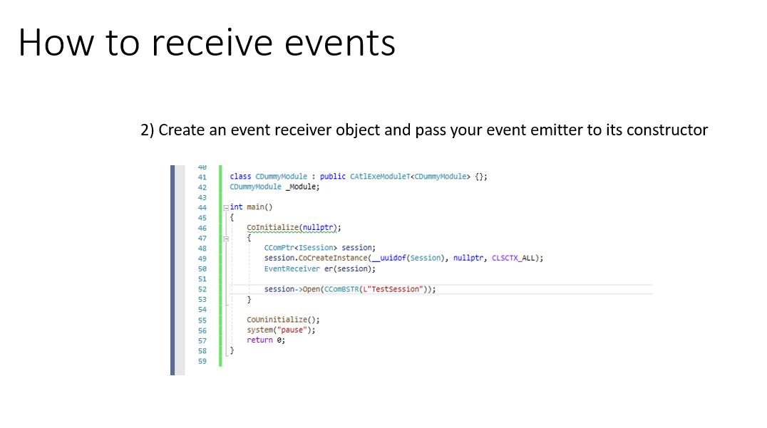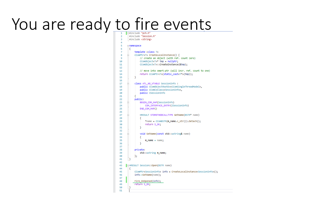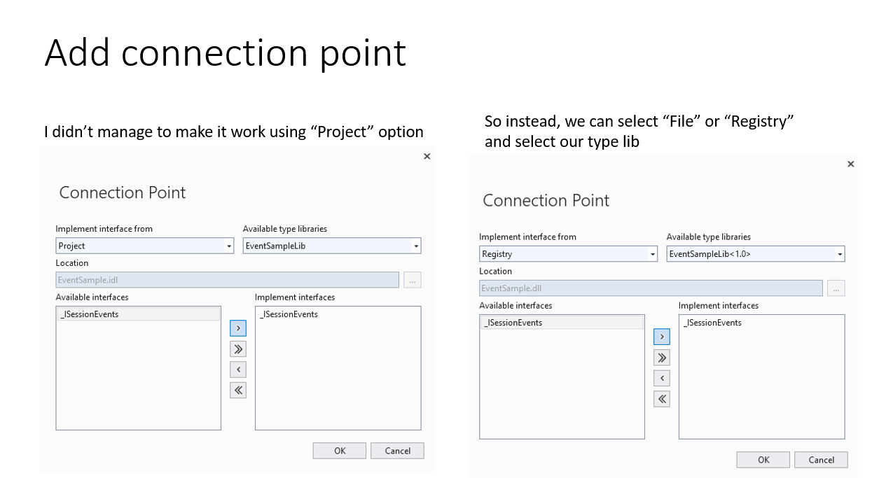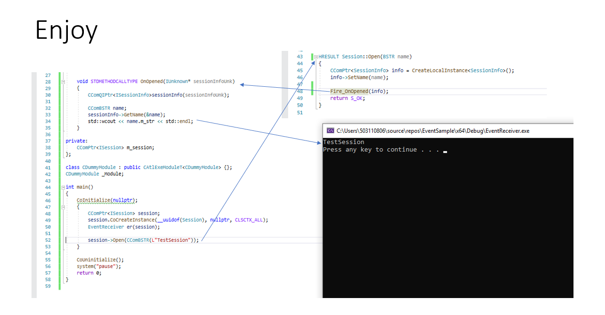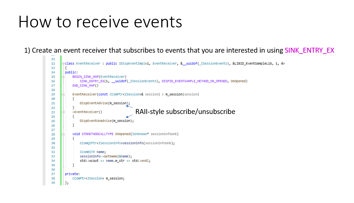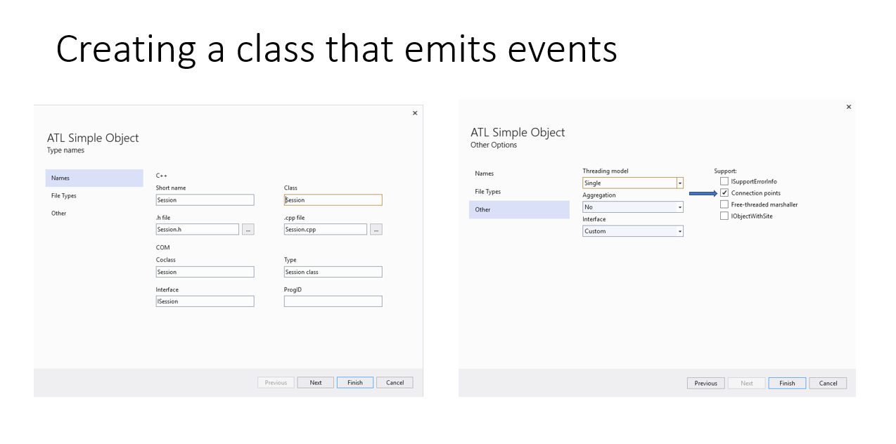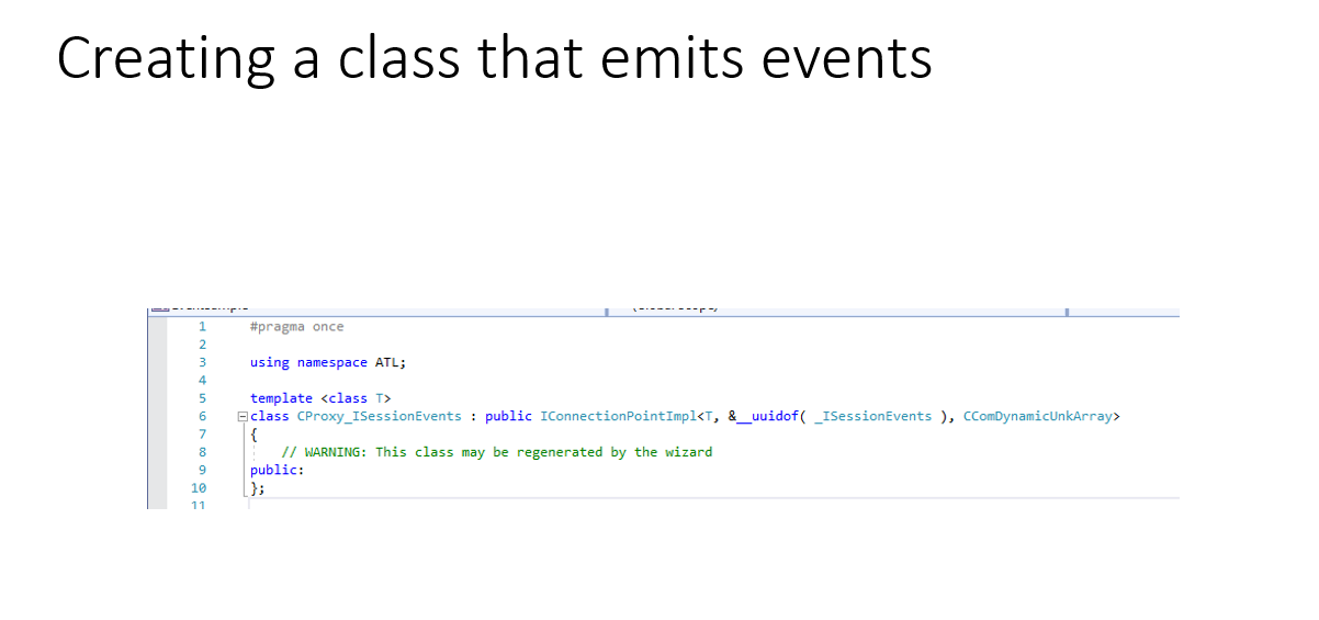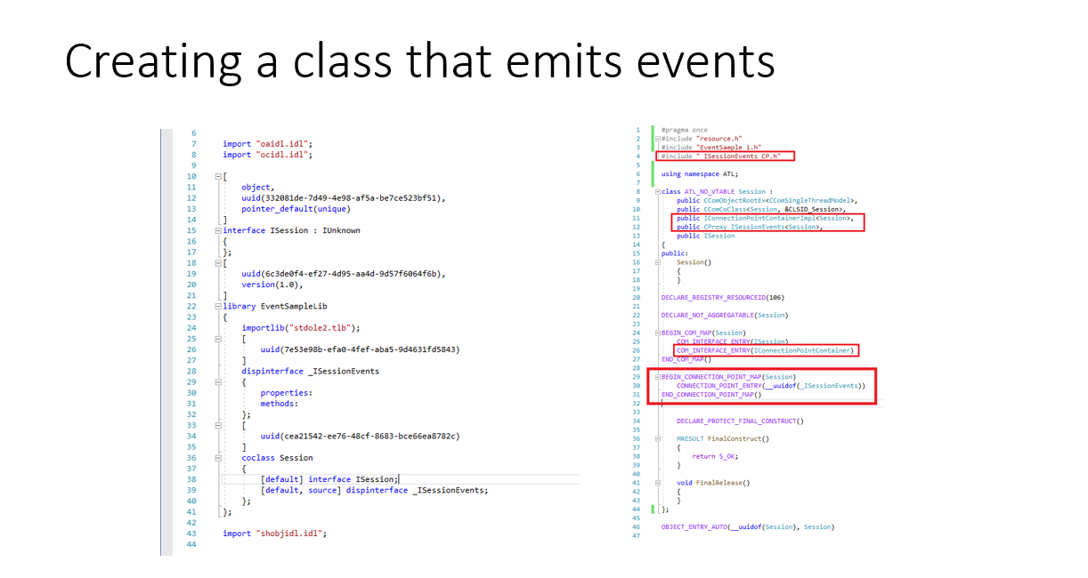 This is a simple project that demonstrates how to emit, subscribe and unsubscribe from COM events.