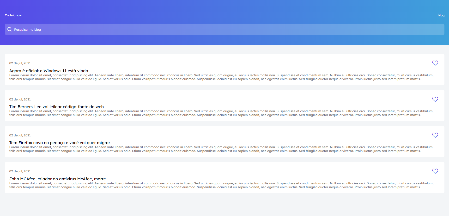 Desafio_1 💻 Projeto. Esse desafio foi proposto pelo Luri Silva em seu canal do Discord Codelândia. O desafio conciste em tranformar o projecto do figma em uma land page utilizando tecnologias a sua escolha.