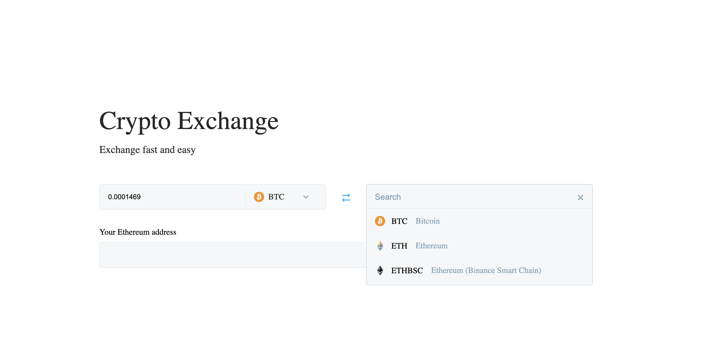 crypto-exchange Mini description Test project with simple UI. You may choose tickers and check exchange rate. Tools JS ,VUE 2, VUEX, AXIOS Project setup yarn install Start project yarn serve