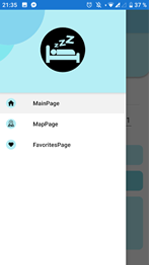 - Flyout Page = tam sa nachádza presmerovanie na niekoľko pagov / Map page, Main Page, Favourite Page