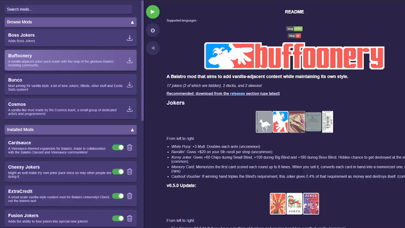 An External Mod Manager for Balatro that makes it easy to browse, install, and update mods.