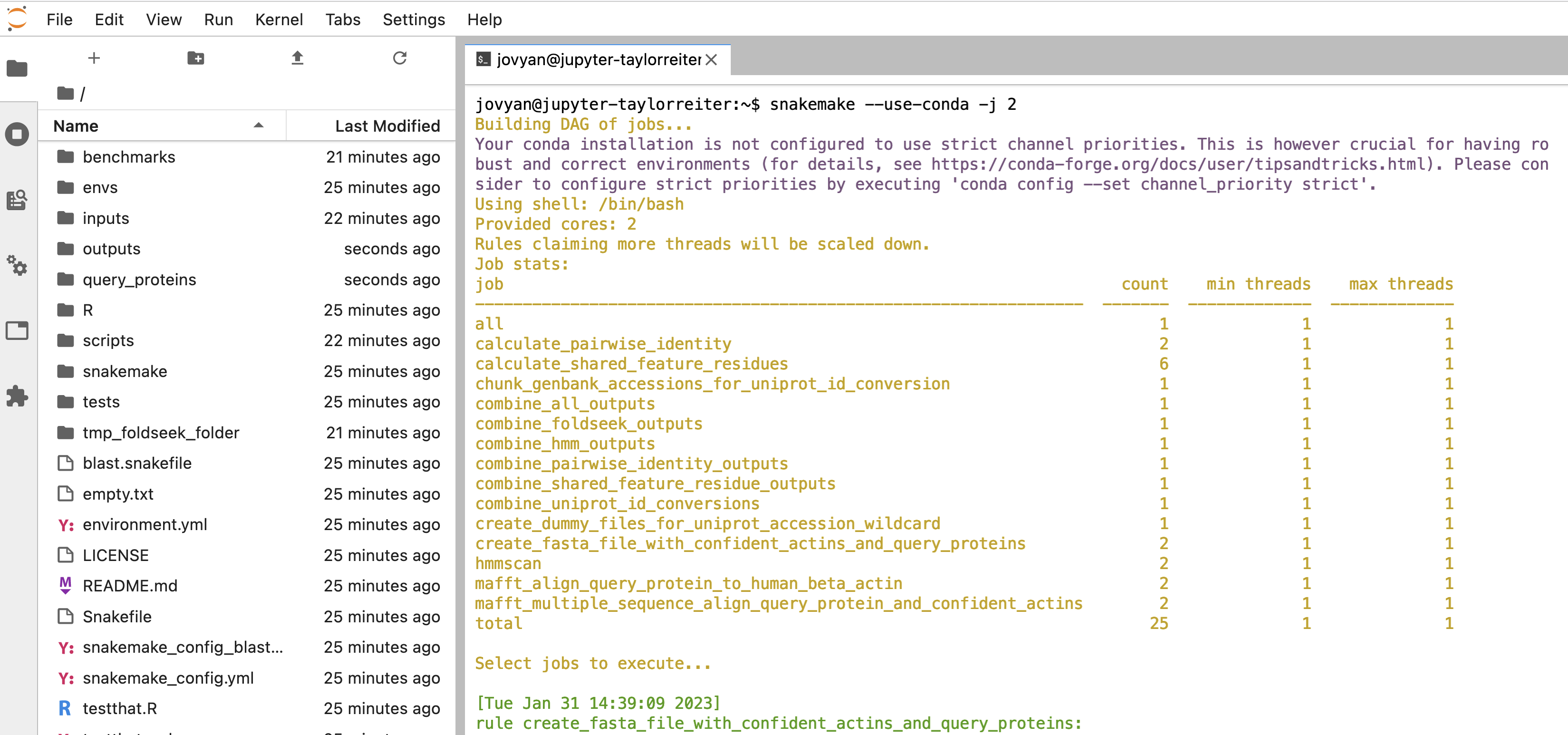 Then, enter the command snakemake -j 1 and allow the pipeline to run.