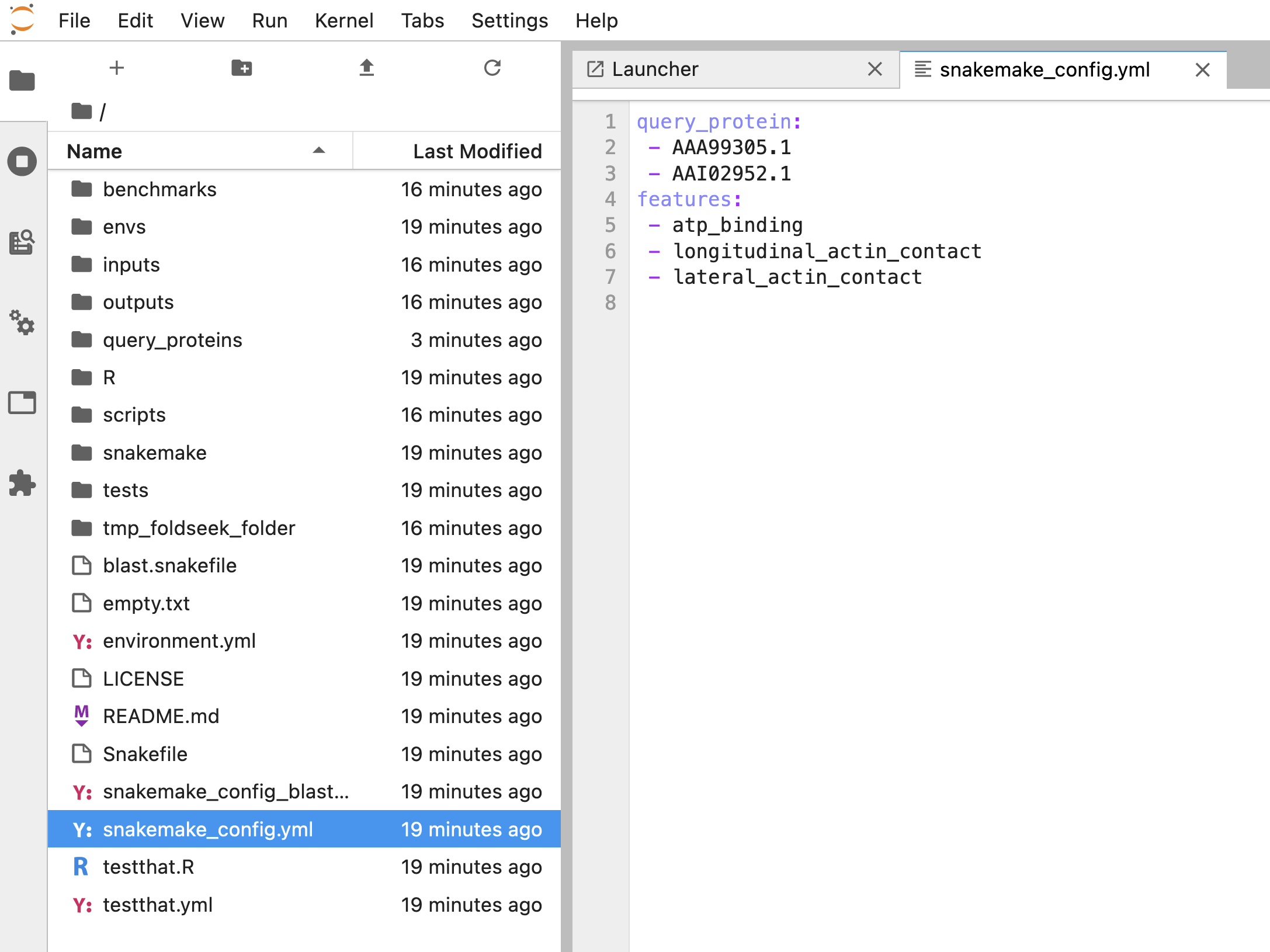- Upload your FASTA sequence to the Binder and edit the config file to tell the pipeline the name of your FASTA file.