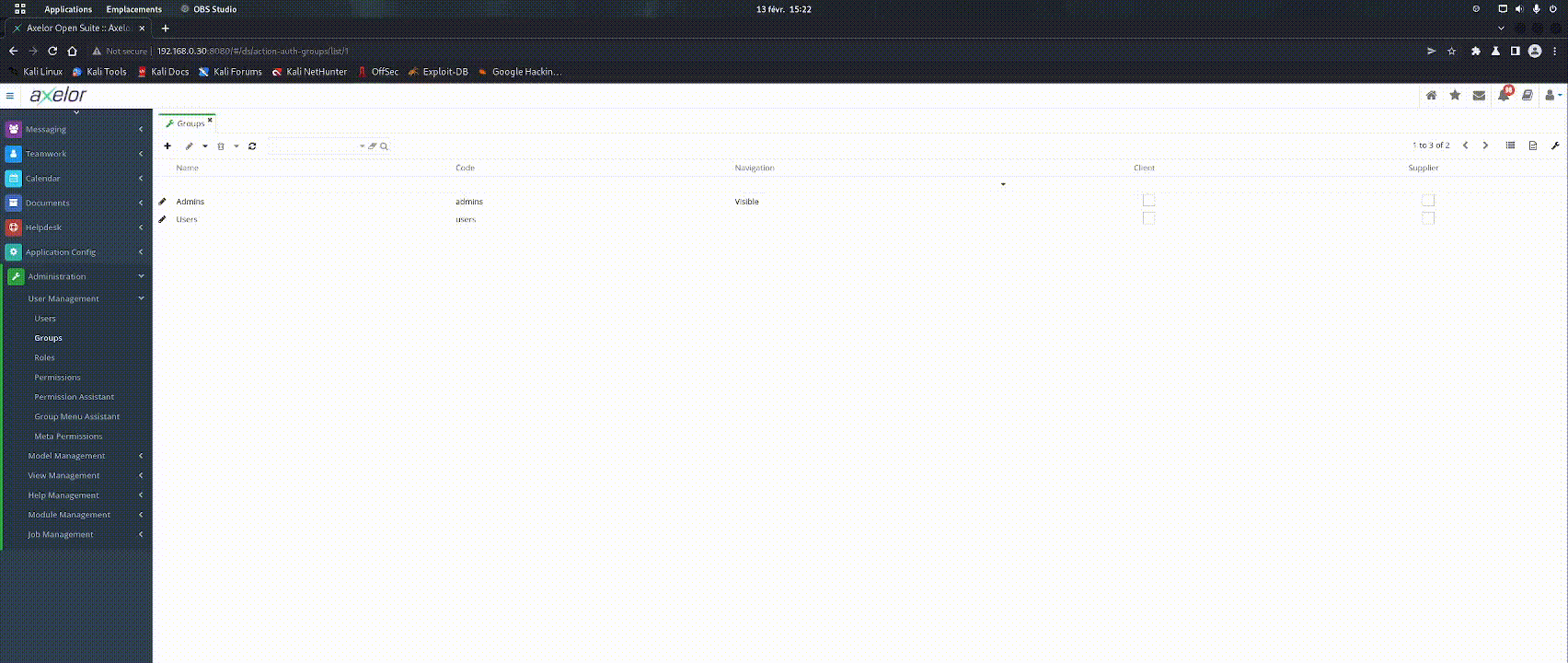 Get XSSED When visiting the Users view : http://192.168.0.30:8080/#/ds/action-auth-users/list/1