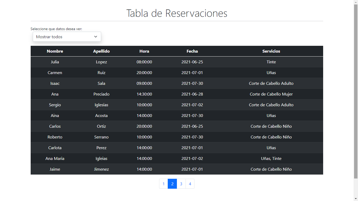 Este ejercicio consta de una tabla con datos obtenidos de mysql mediante PHP, se hizo una peticion fetch con js para obtener los datos de nuestro backend en un formato JSON.