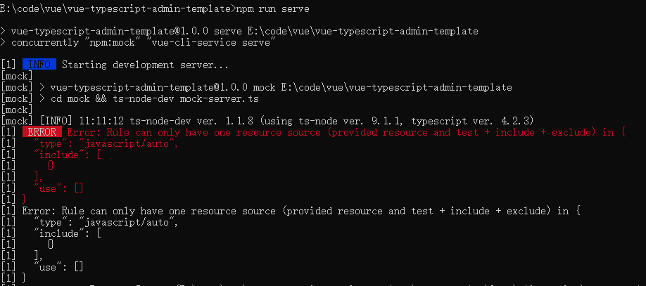 [1] ERROR Error: Rule can only have one resource source (provided resource and test + include + exclude) in {