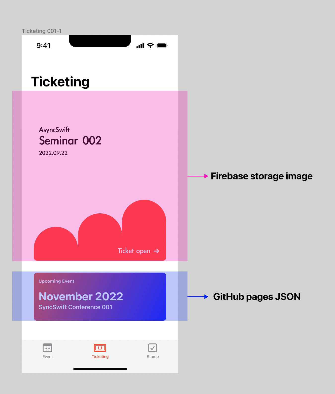 -> Ticketing Button은 Firebase image 를 가져와서 표시