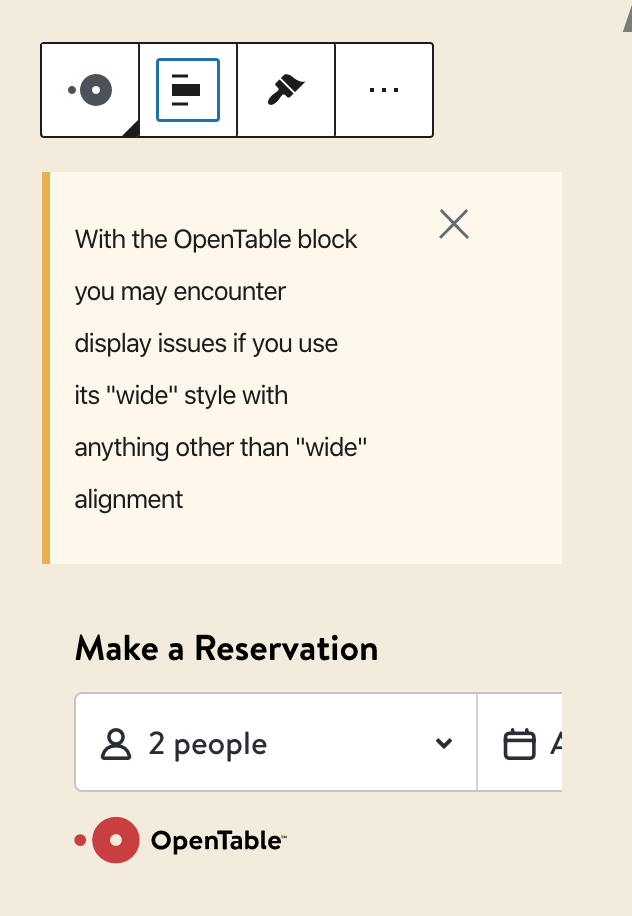 Block: OpenTable: Add a warning if width is set to anything other than wide if style is wide #15323
