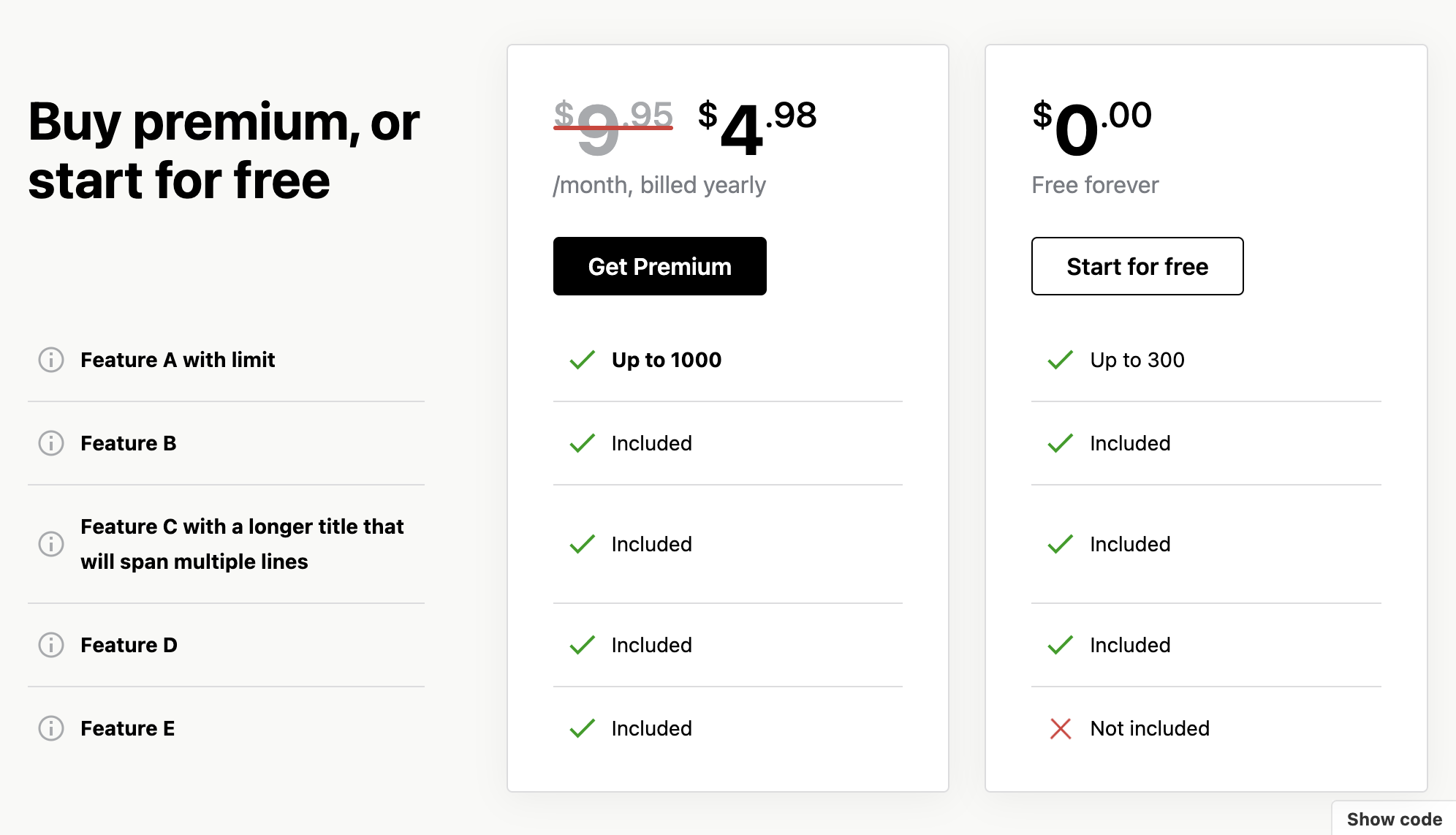 This PR adds a new Pricing Table component, that can be used to compare multiple plans.