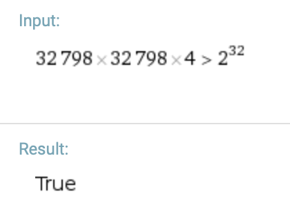 If the image is 32798x32798 it will overflow and allocate way to little bytes since: