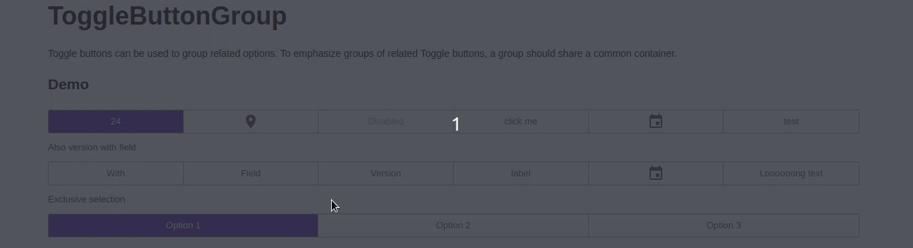 - Adds an exclusive boolean prop to the ToggleButtonGroup. When set, if an option is already selected, any persistent toggles on the same option will be ignored.