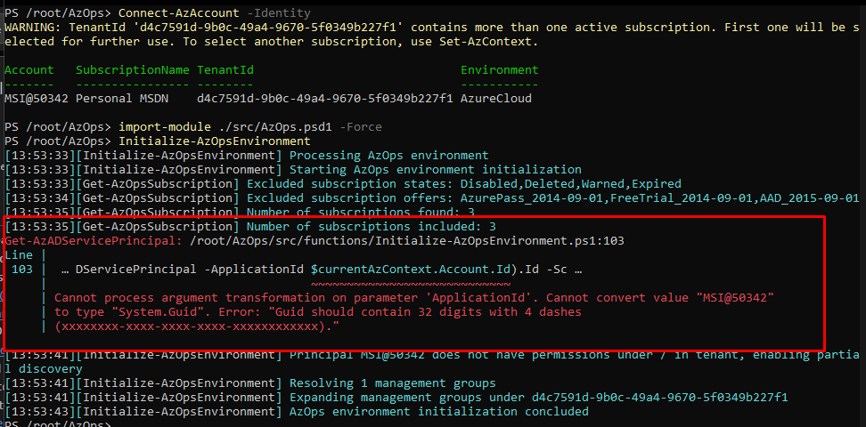 Added logic to fix lookup of root mg permissions when using managed identity. Issue introduced in latest Az.Accounts.